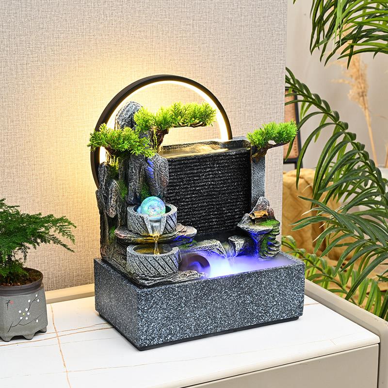 假山流水生财摆件循环水景办公室客厅玄关风水轮桌面摆件开业乔迁