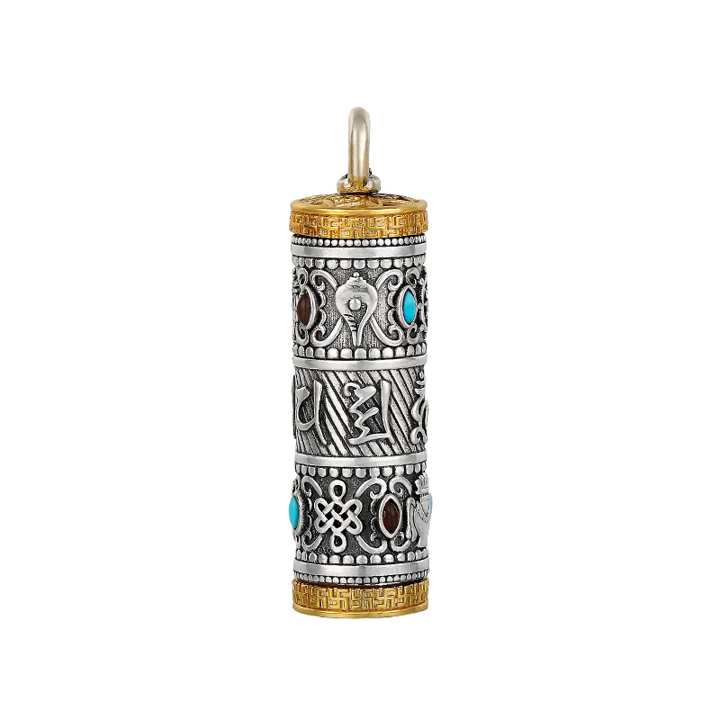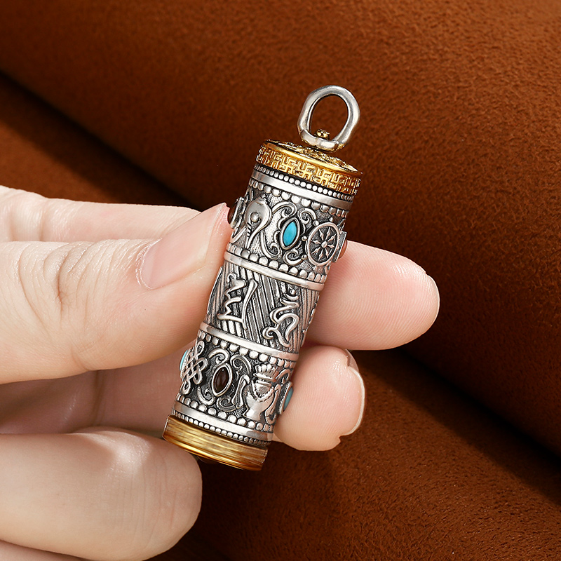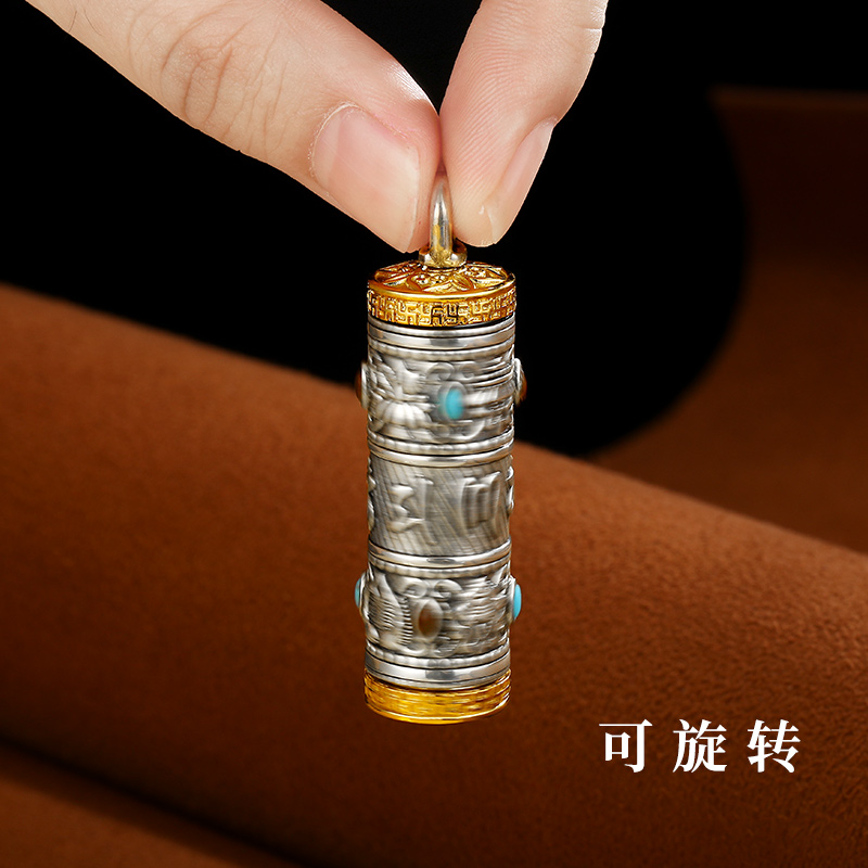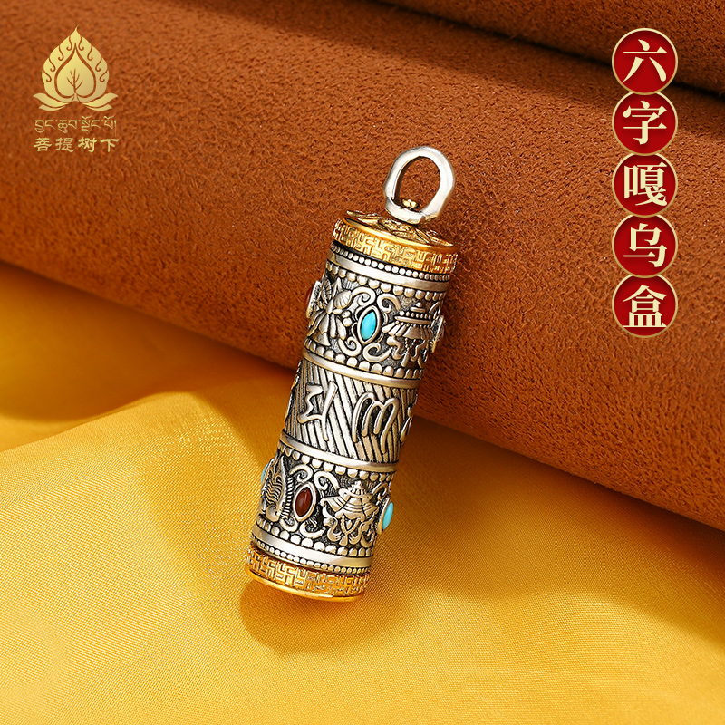 嘎乌盒吊坠S925纯银镀金六字真言嘎乌盒子男女项坠随身挂件可打开