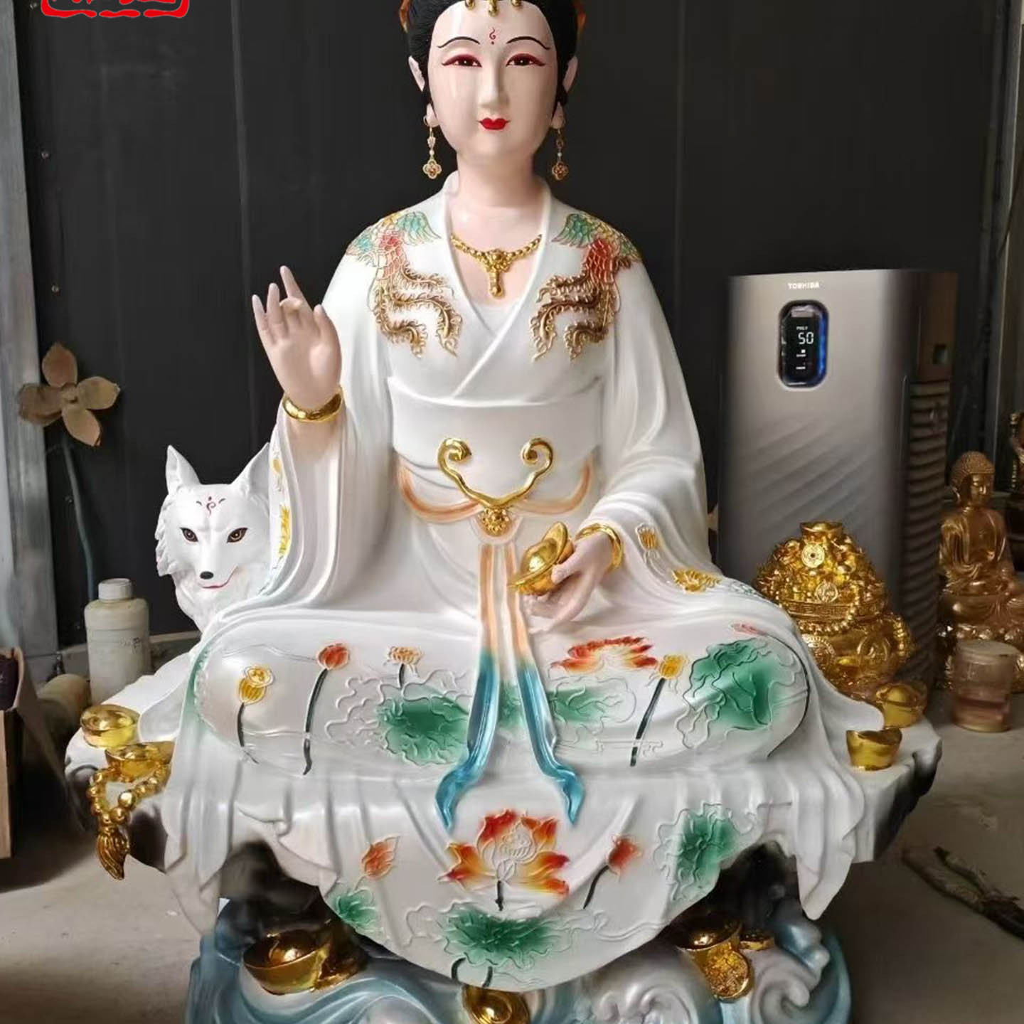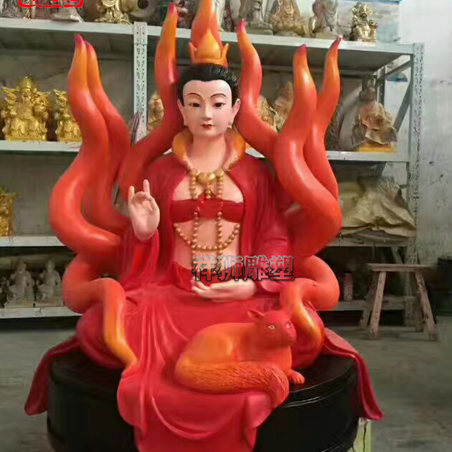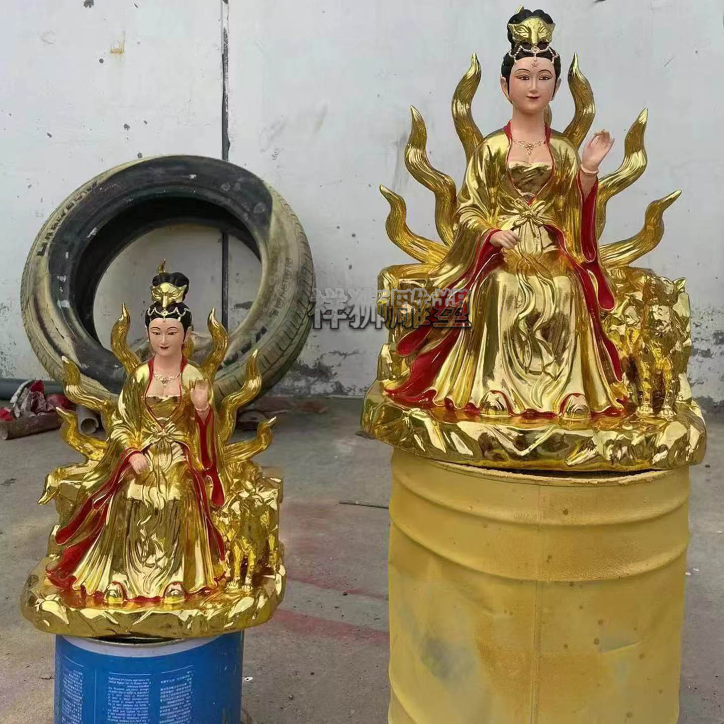 铜雕工厂彩绘铸造九尾娘娘神像多尺寸定制寺庙佛堂供奉摆件批发