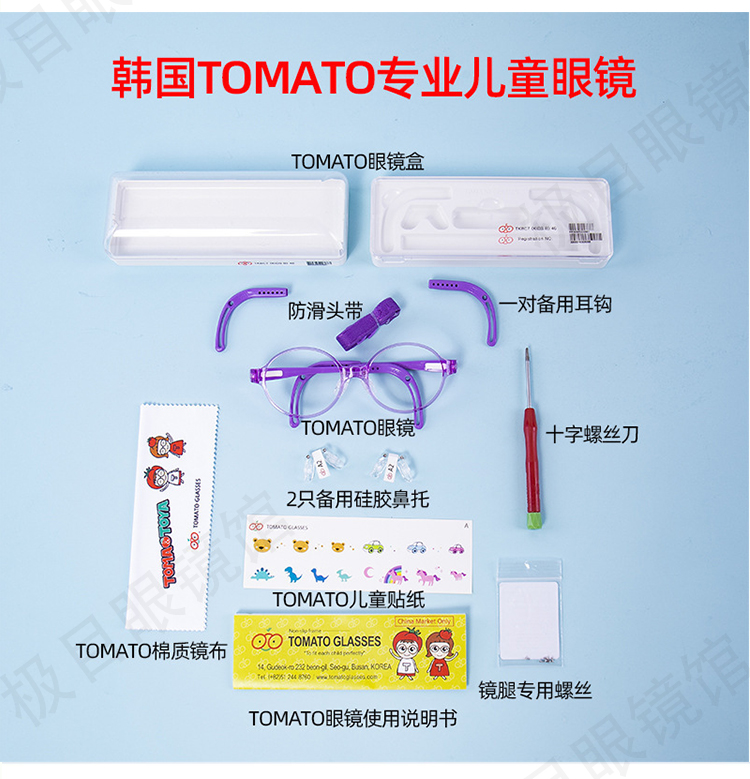 TJBC款韩国进口TOMATO番茄儿童眼镜架框架超轻近视远视弱视矫正