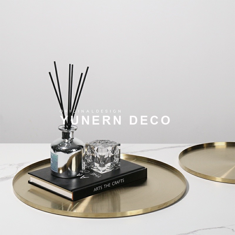 简约现代轻奢金属收纳圆托盘样板房间售楼处酒店客厅X茶几桌面摆