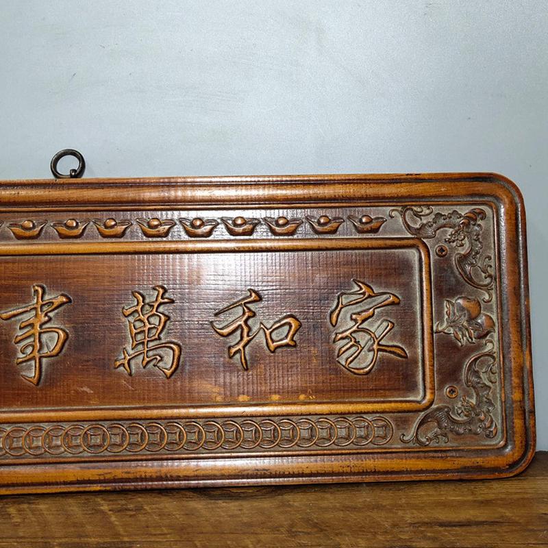 古玩木雕木器收藏牌匾牌匾家和万事兴花梨木客厅挂件装饰品