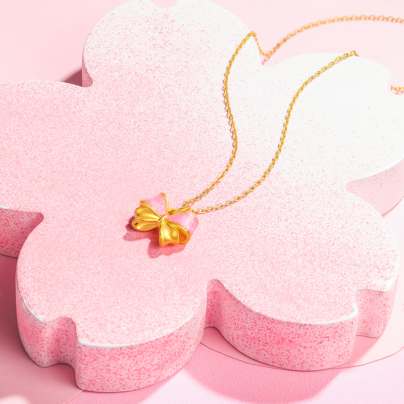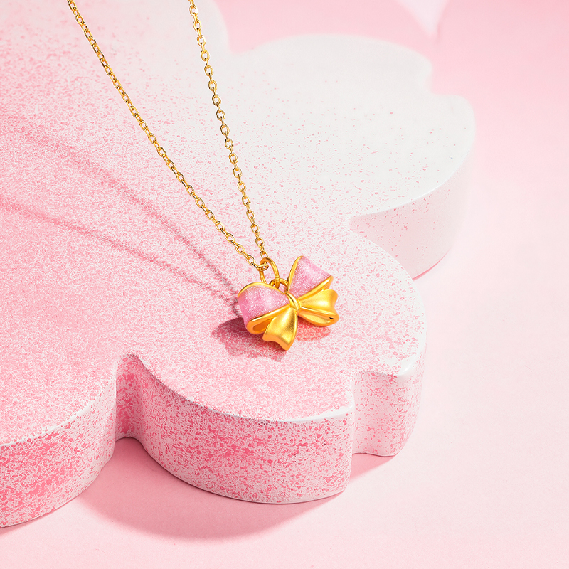 周六福黄金蝴蝶结吊坠女款5d硬金挂坠定价多巴胺在逃公主圣诞礼物