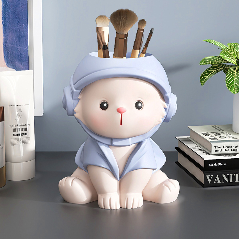 可爱兔子笔筒摆件家居饰品办公室工位桌面化妆刷S眉笔收纳桶小礼