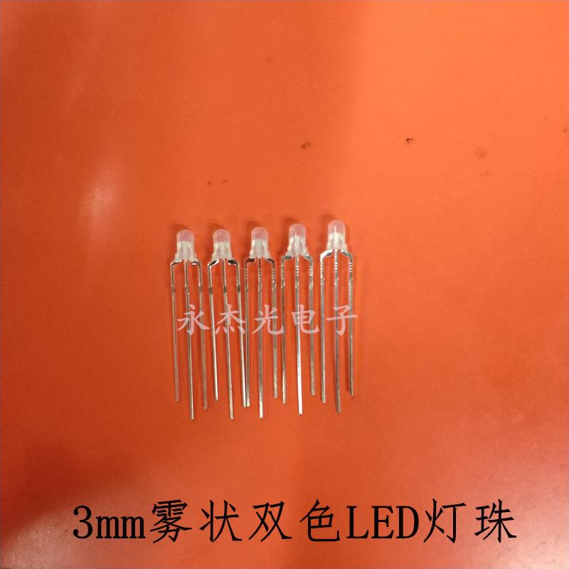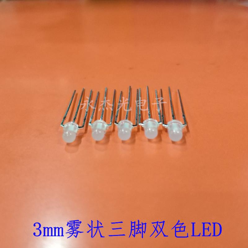 双色led发光二极管3mm红蓝共阳高亮led灯珠f3红蓝共阳雾状双色