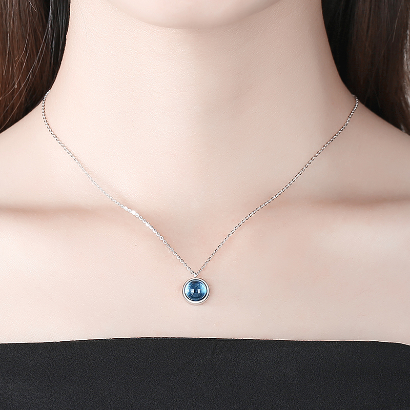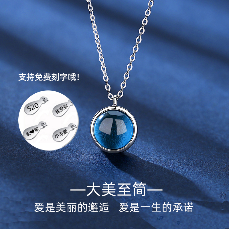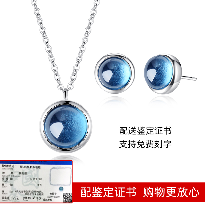 天然托帕石项链女伦敦蓝925银锁骨链吊坠简约大气送证书生日礼物