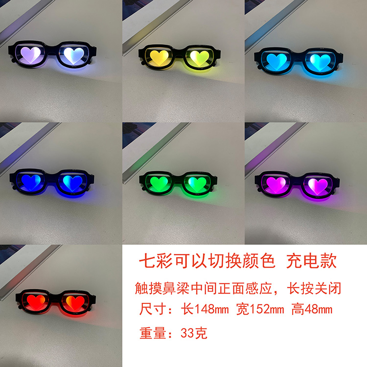 发光表白炫酷七彩爱心柯南动漫led红眼特效蹦迪创意搞怪眼镜女潮