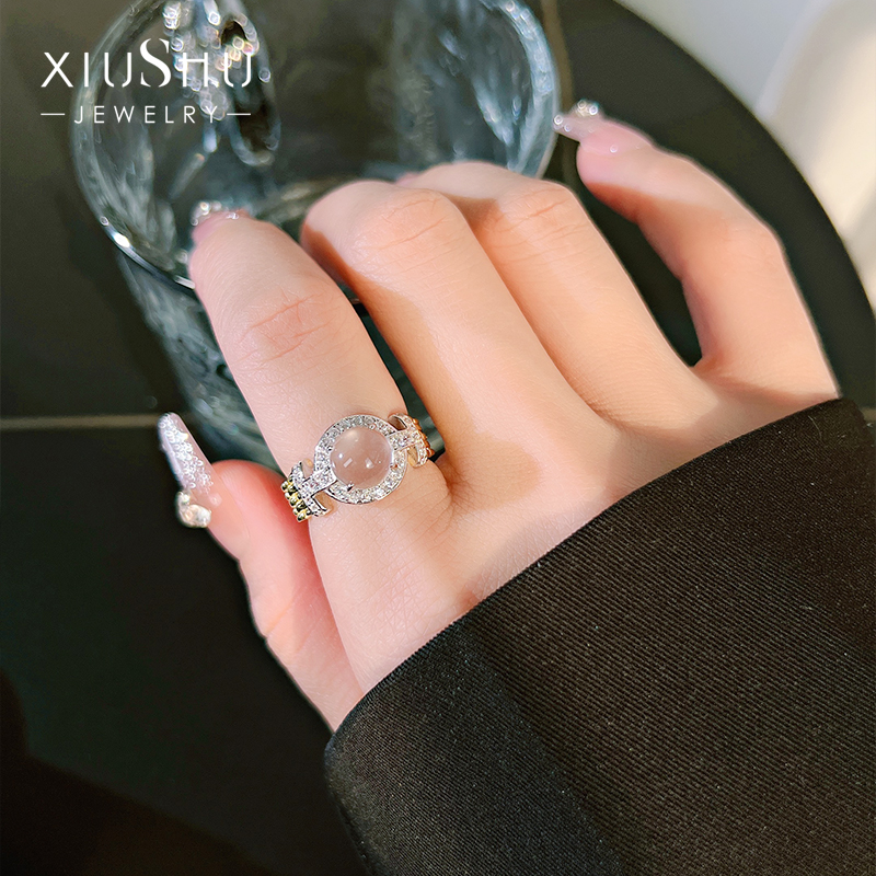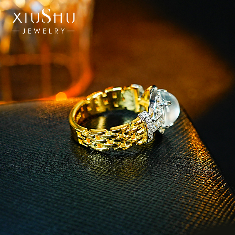 中古风新中式925银水沫玉戒指镶嵌高碳钻气质小众设计百搭简约女