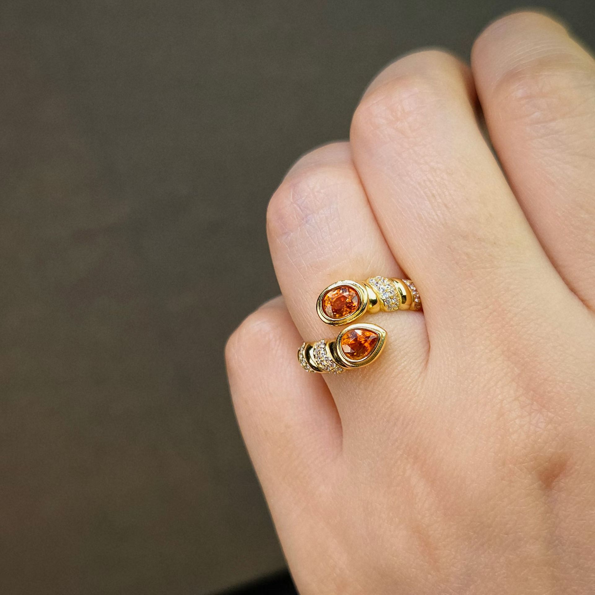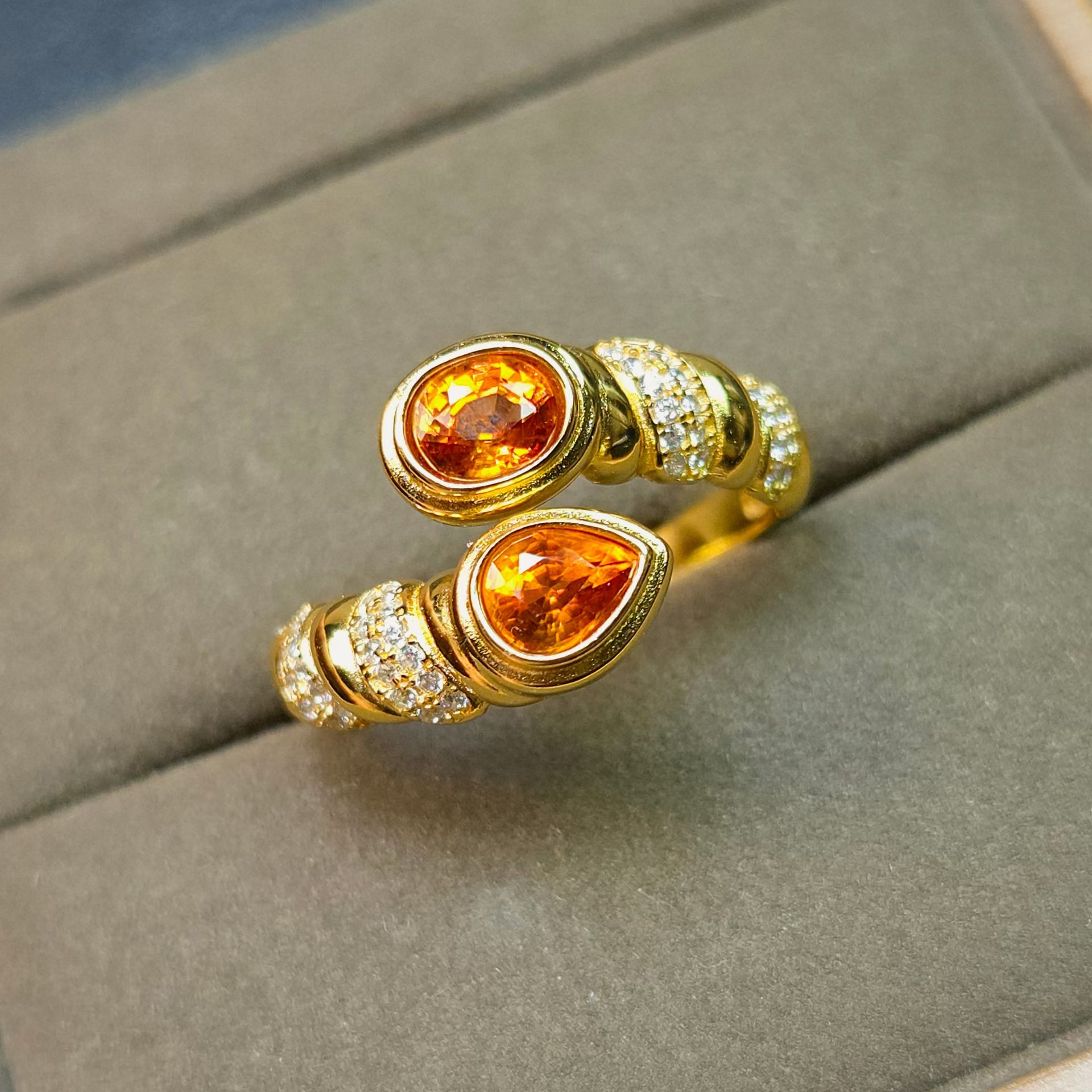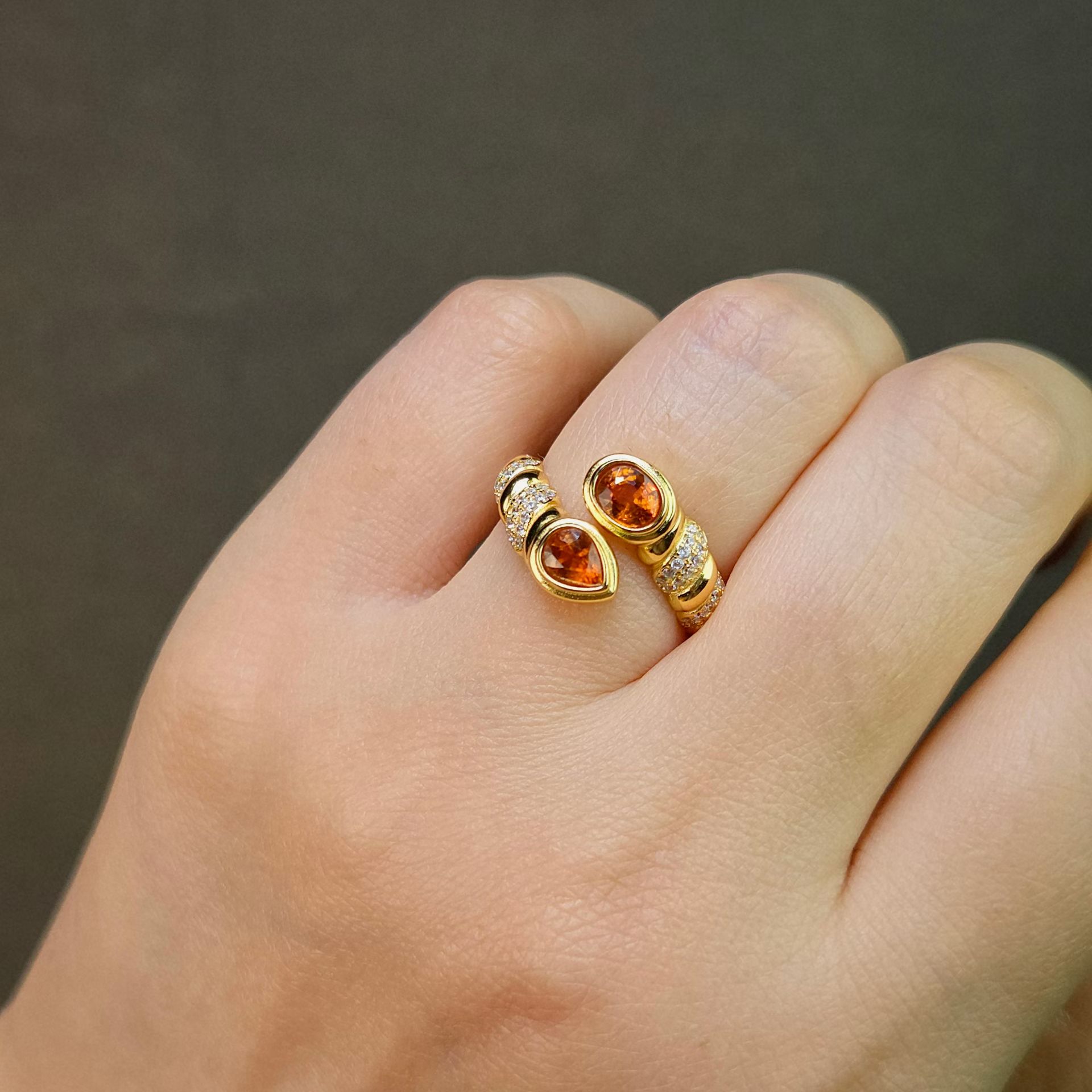 天然芬达石戒指双石位戒指新款精工双倍快乐活力满满上开口设计