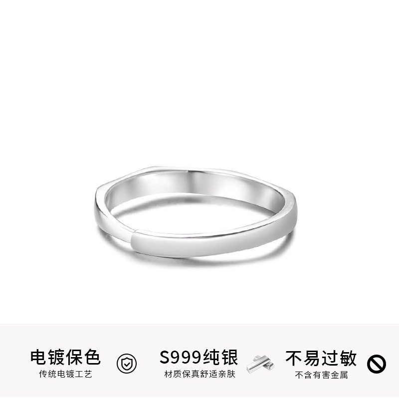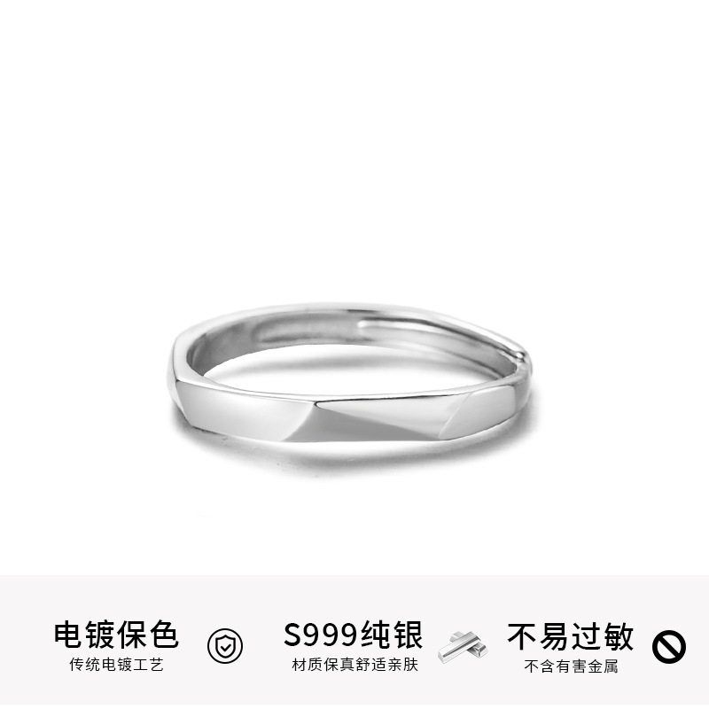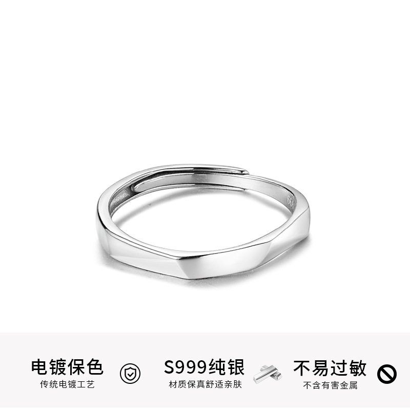 XBK指女纯银戒999高级感风食指光面可设计素圈指环冷淡调节小众