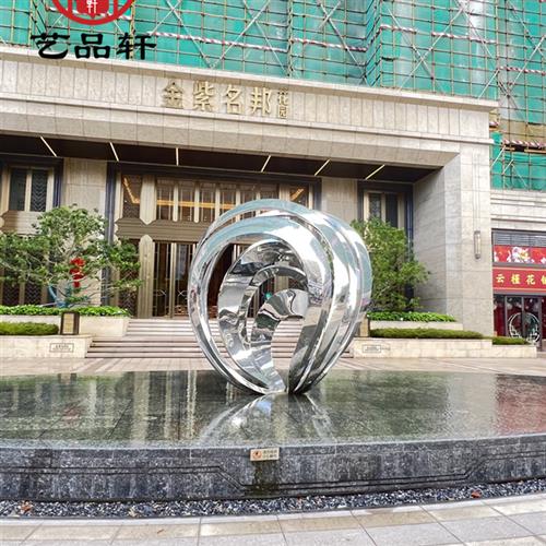 售楼部水景大型不锈钢镂空发光花瓣雕塑定制户外金属抽象圆环摆件