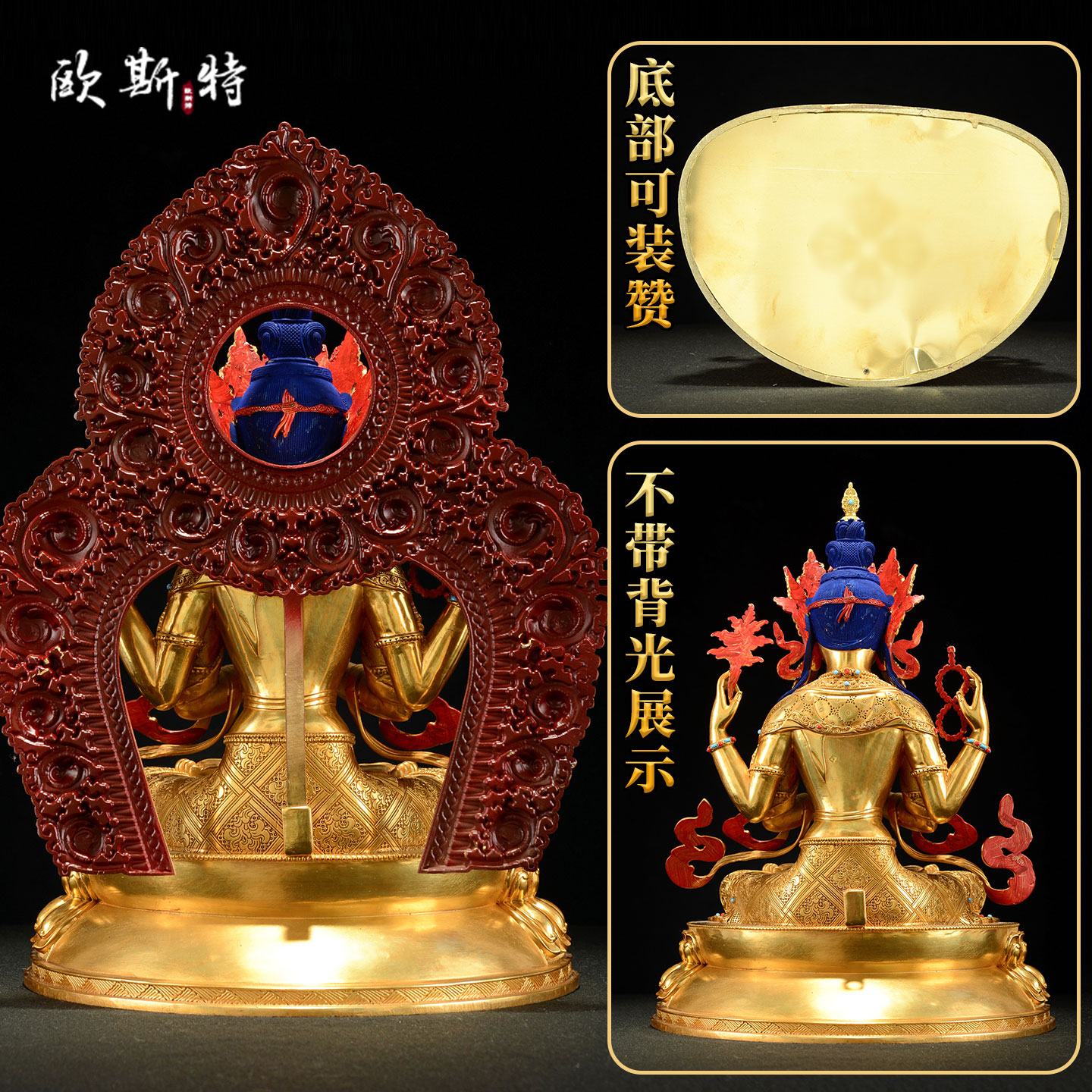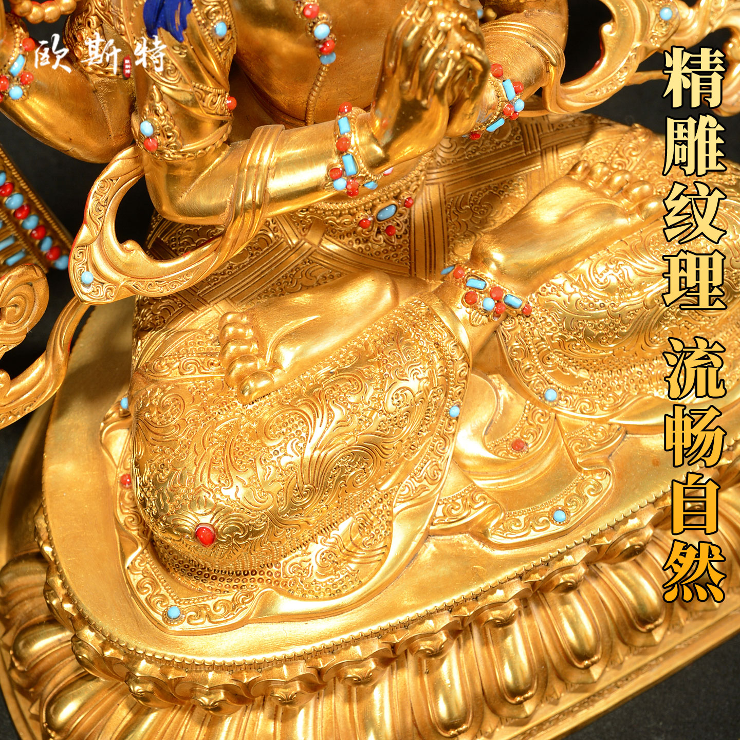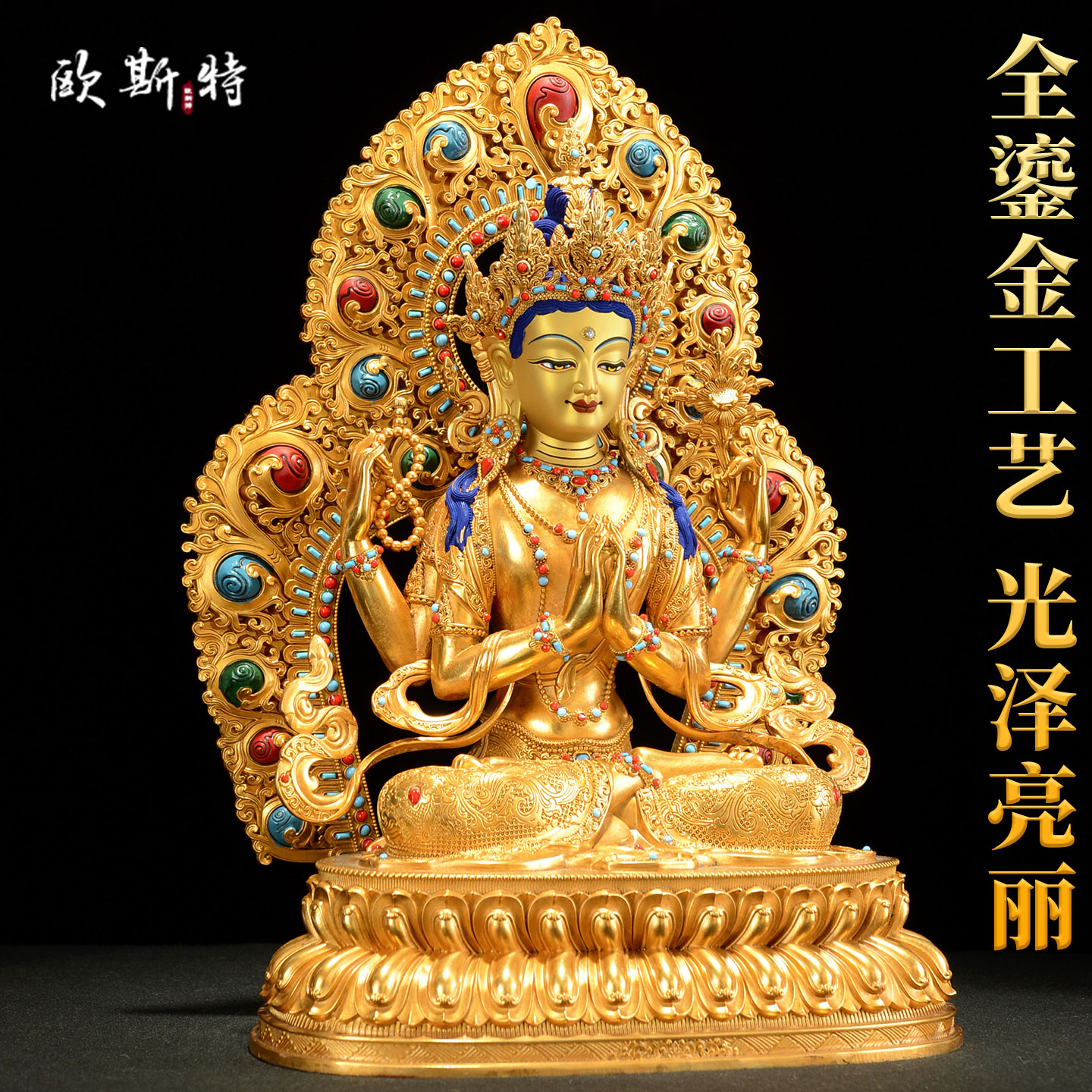 欧斯特全鎏金《四臂观音》精工铜雕《观音菩萨》桌面铜像摆件