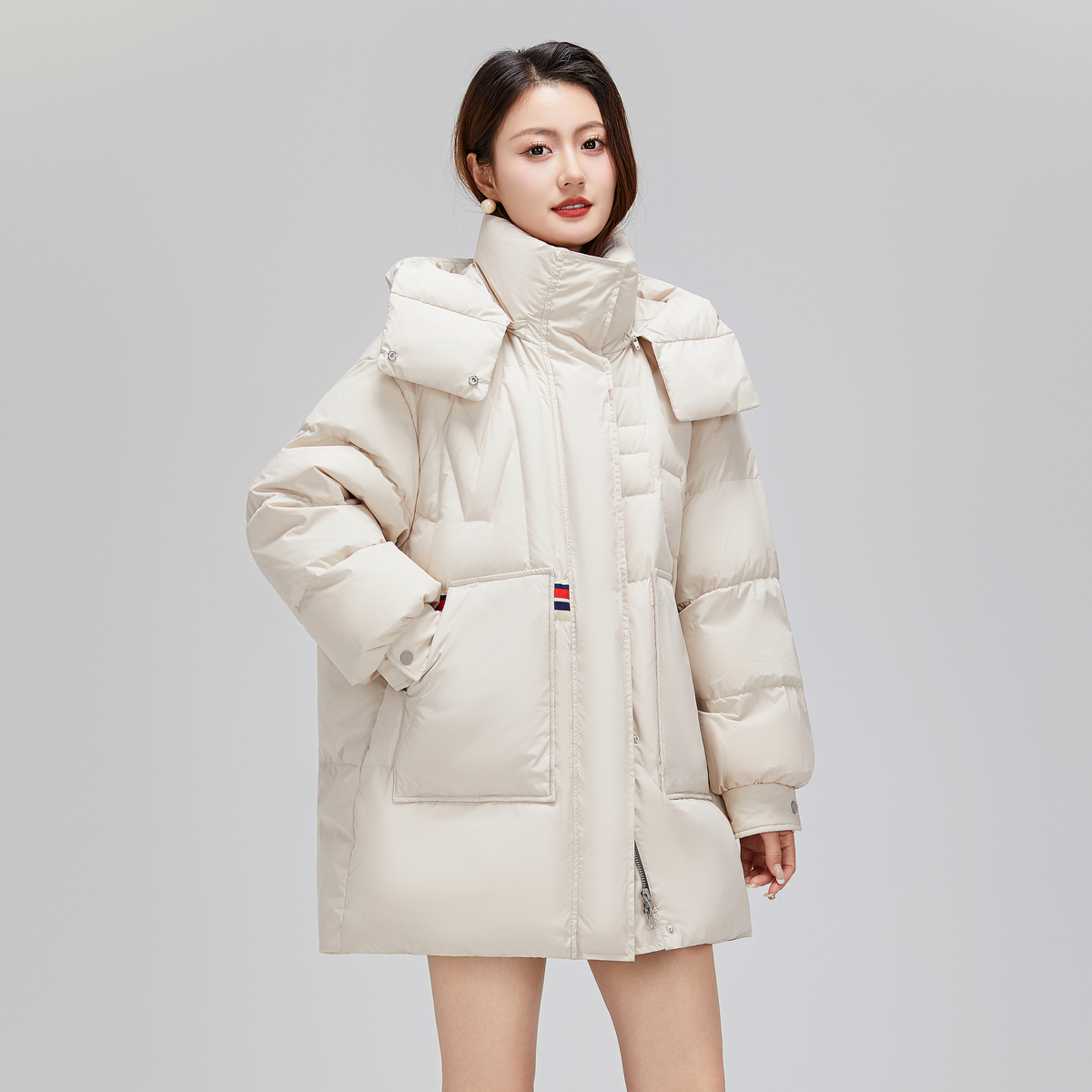 雪中飞2025冬新款女士短款羽绒服可拆卸帽加厚保暖时尚休闲气质