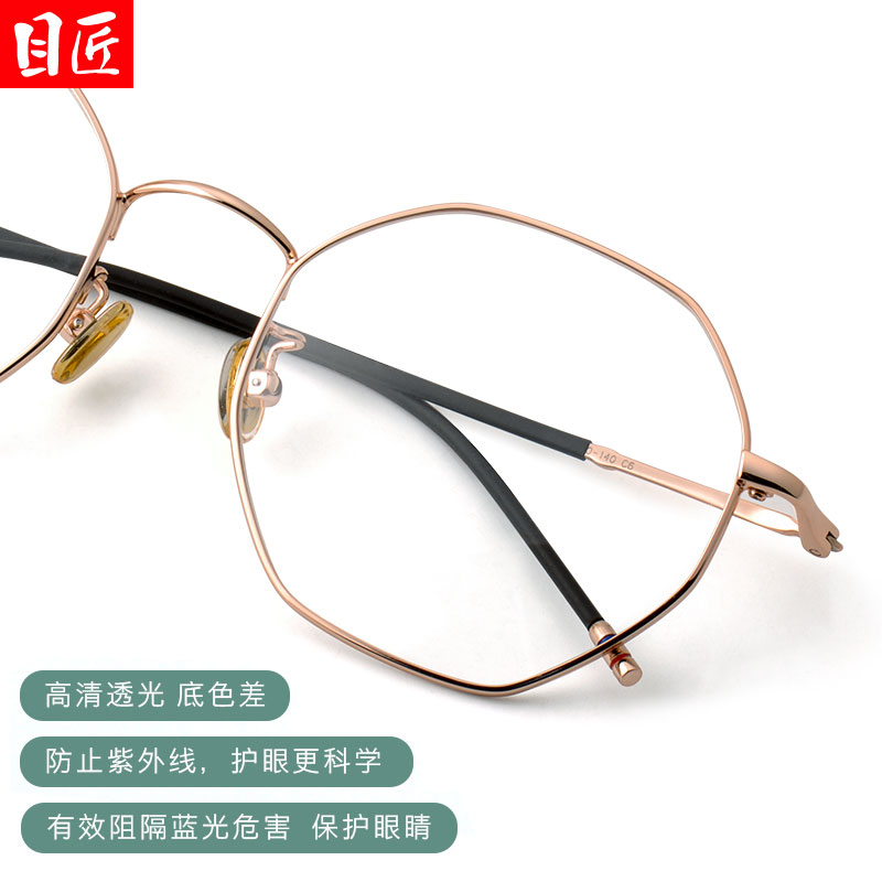 目匠超轻纯钛近视眼镜框女可配镜片多边形黑金色合金钛架眼睛镜架