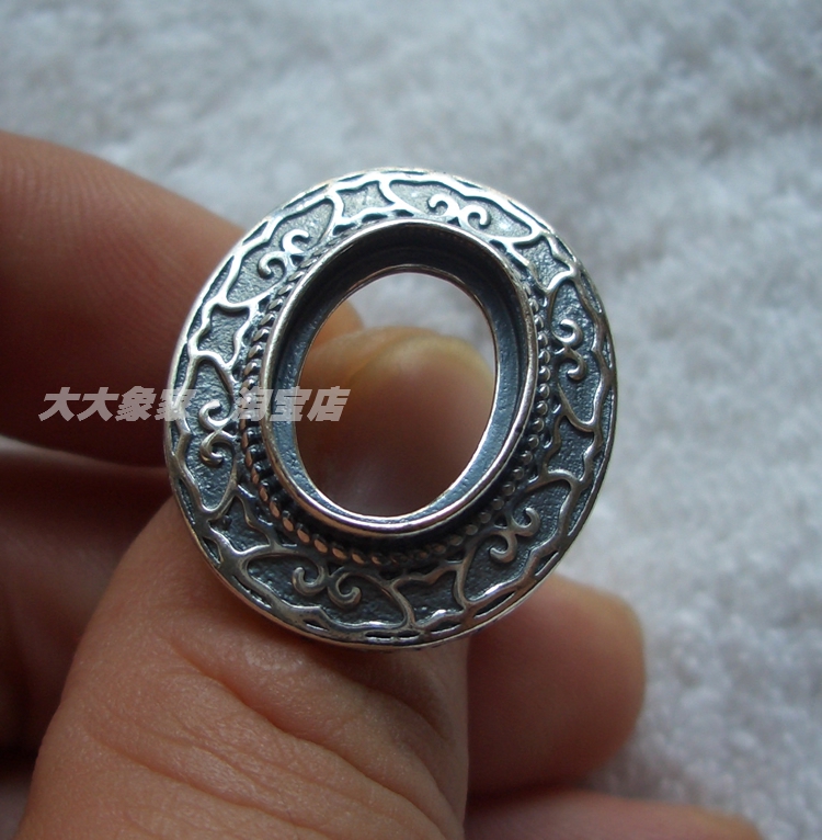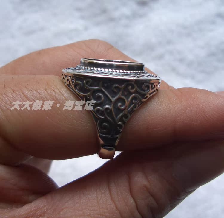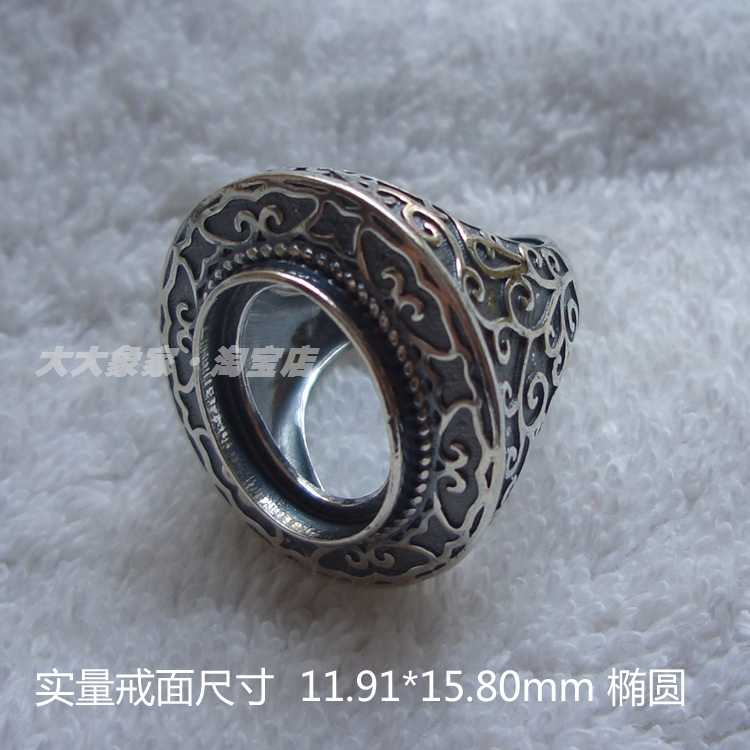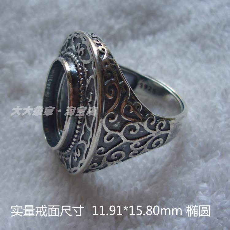 尼泊尔风格12x16银戒托925纯银戒指托手工镶嵌松石蜜蜡青金石活口