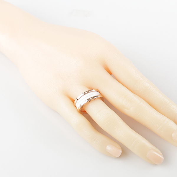 中古「95新」BVLGARI宝格丽BZERO1白色陶瓷二环750玫瑰金55号戒指