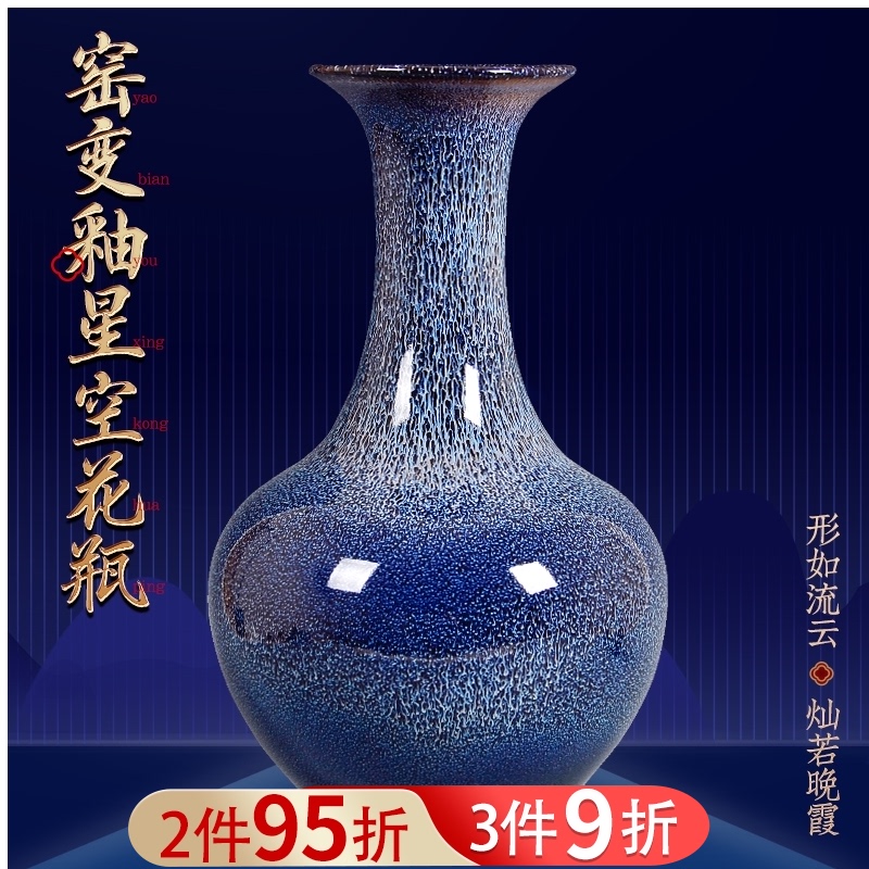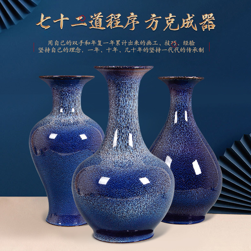 景德镇陶瓷器蓝色花瓶摆件客厅插花新中式客厅电视柜家居装饰品