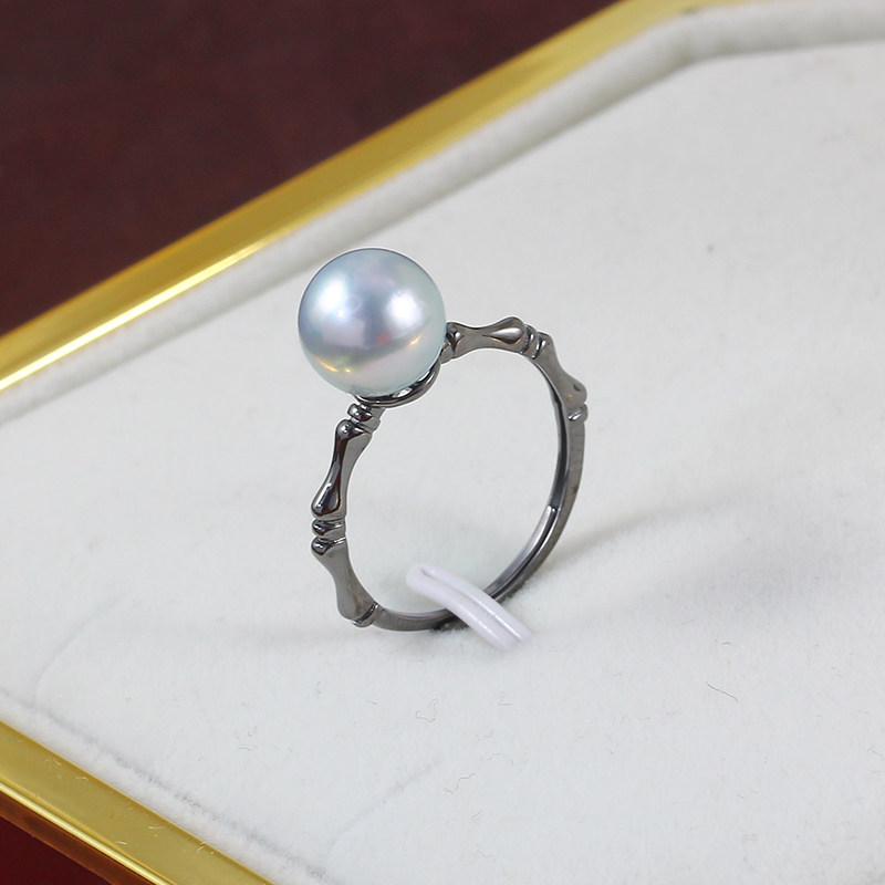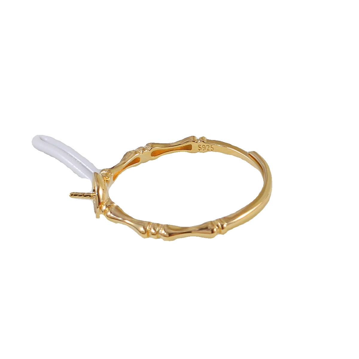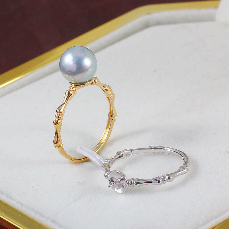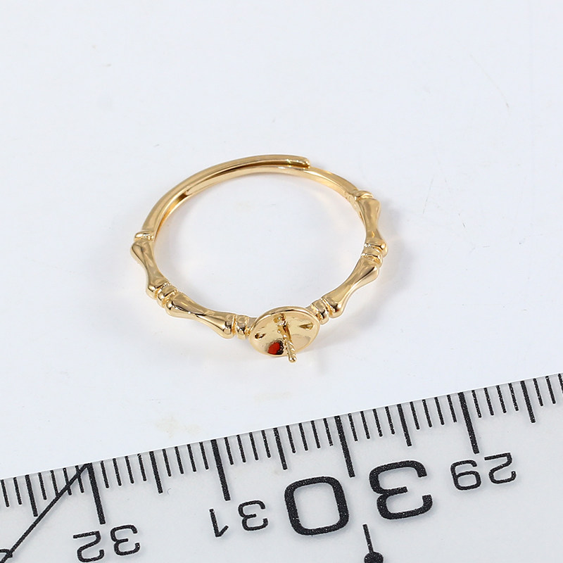 DIY珍珠配件 S925纯银光板竹节戒指空托配件 百搭简约高级感开口