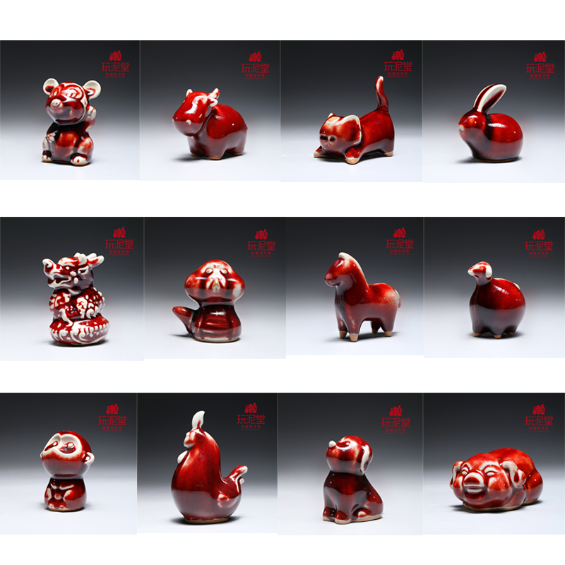 禹州钧瓷陶瓷家居创意半手工桌面萌宠装饰品摆件中国红十二生肖热