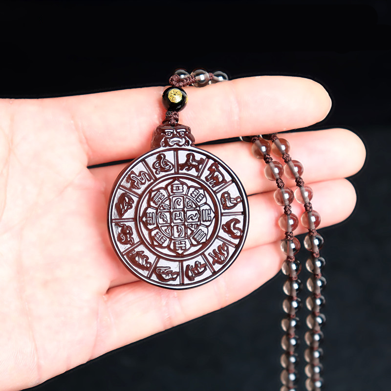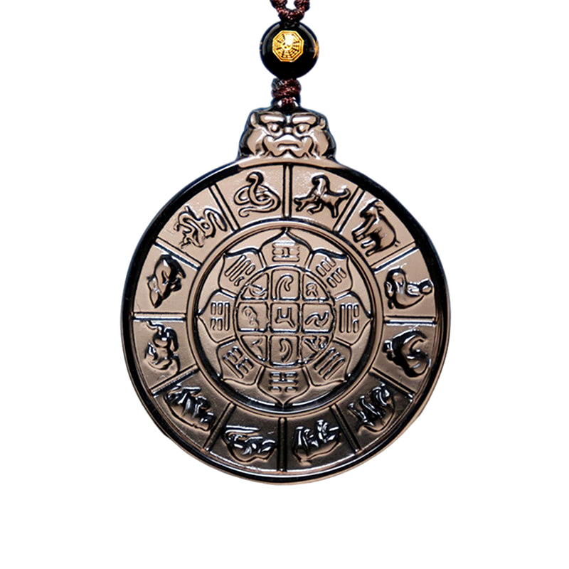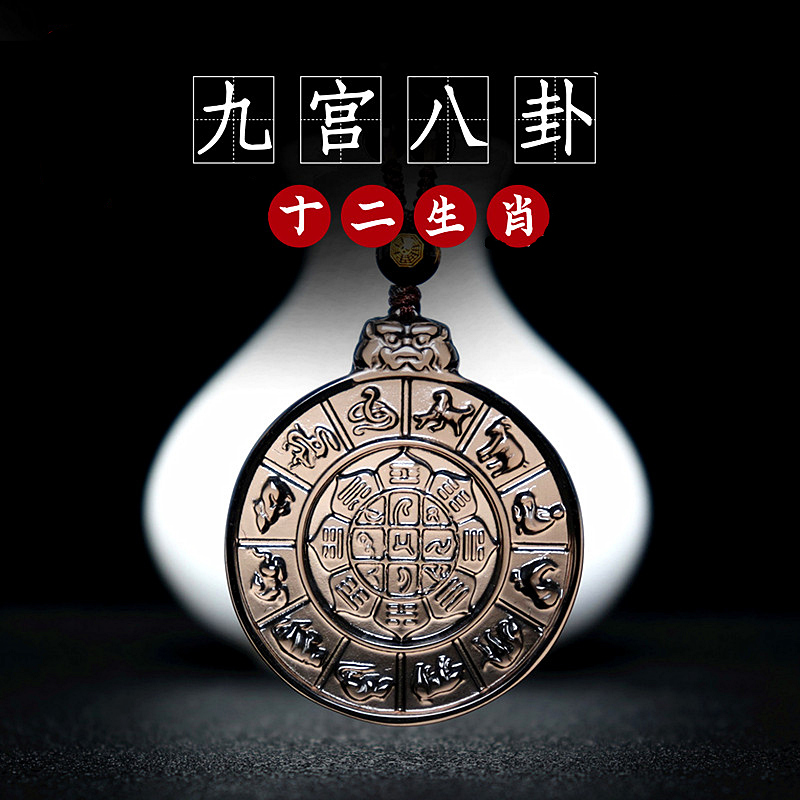 冰种黑曜石十二生肖吊坠男款精雕九宫八卦项链简约国潮风转运挂件