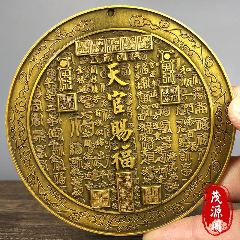 纯铜浮雕天官赐福太极八卦令牌挂件招财纳福风水门牌装饰吊坠收藏