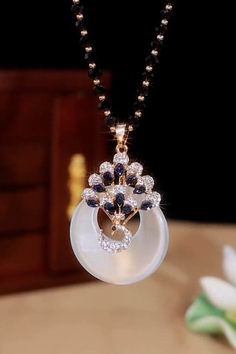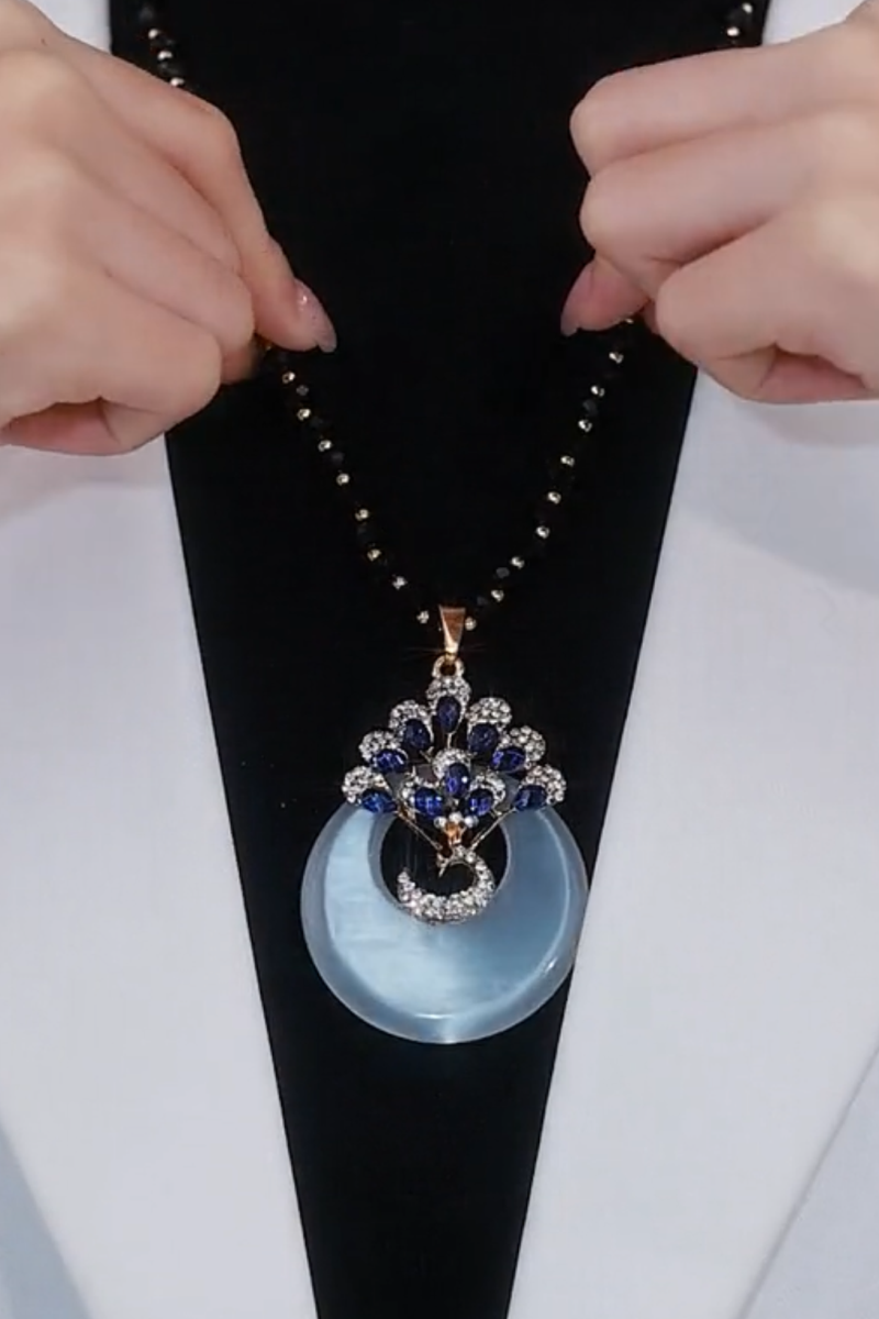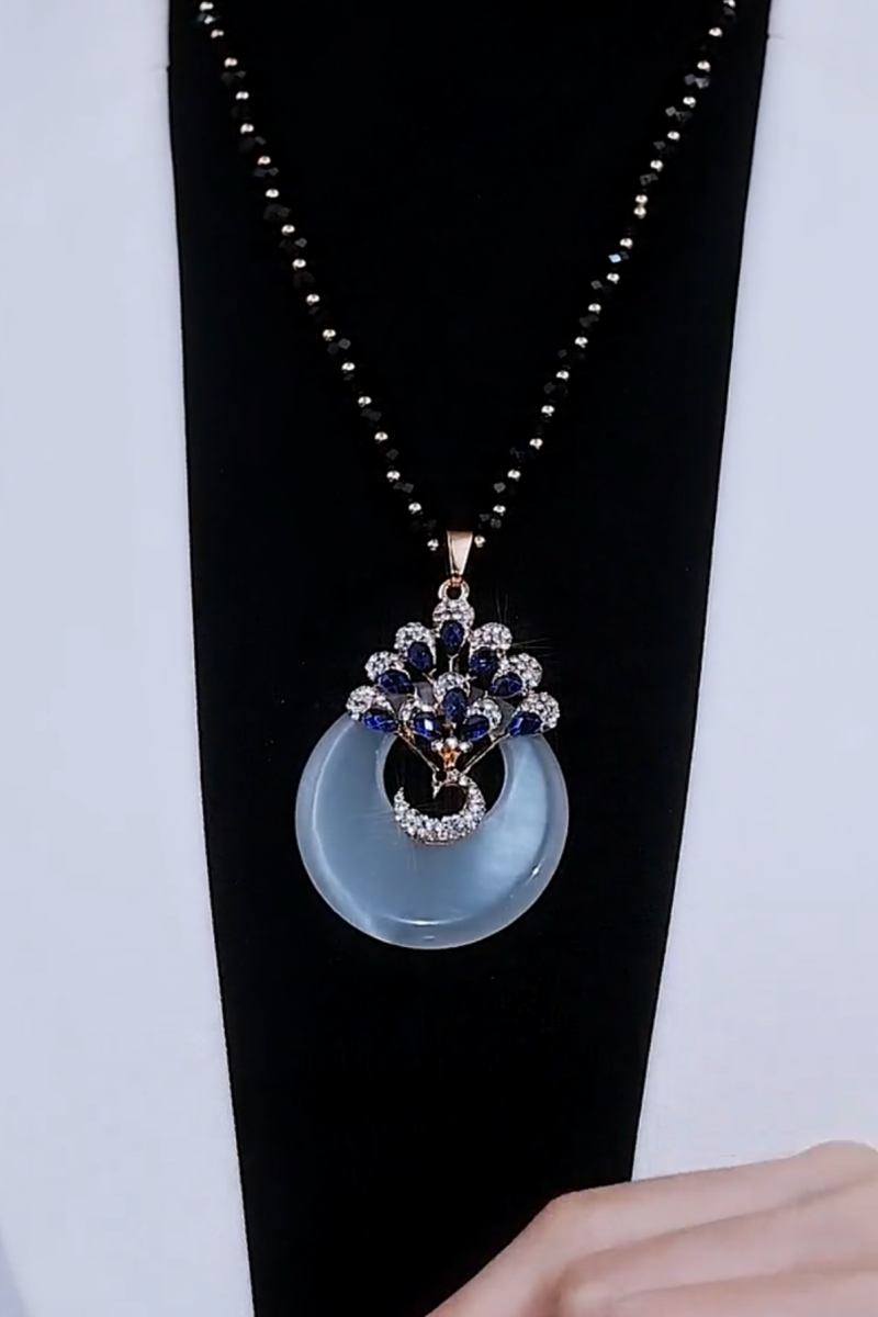 孔雀猫眼石项链时尚洋气毛衣链长款大吊坠2022年新款秋冬挂件配饰