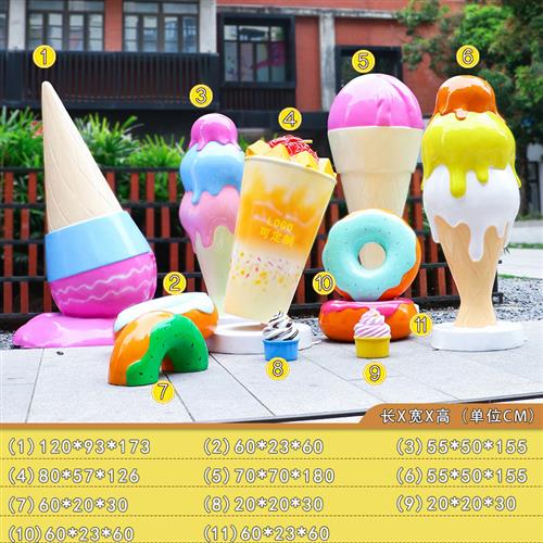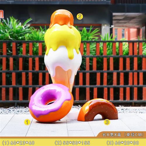 玻璃钢冰淇淋模型雕塑户外商铺奶茶店打卡装饰甜甜圈甜筒景观摆件