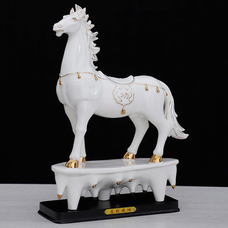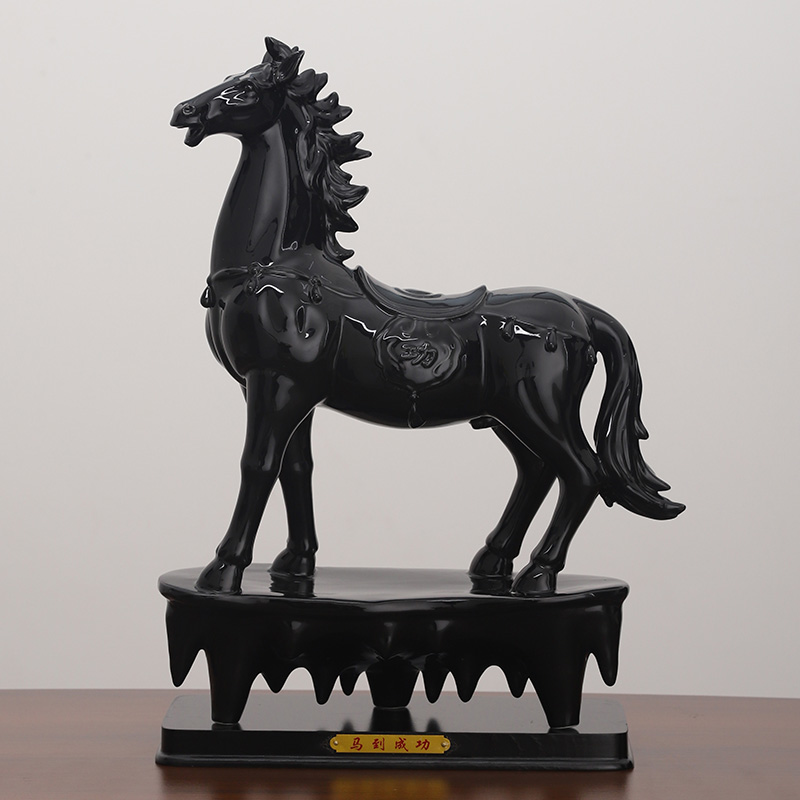 陶瓷黄色马摆件招财马到成功客厅办公室装饰工艺品玄关乔迁礼品
