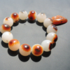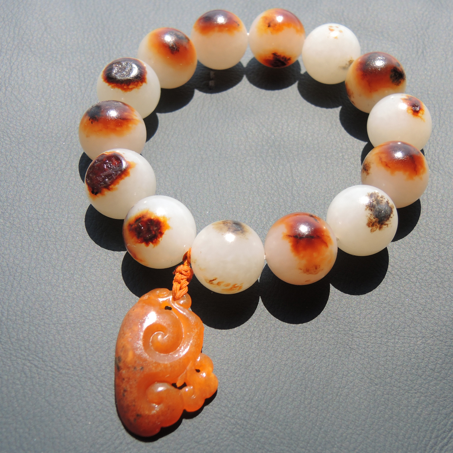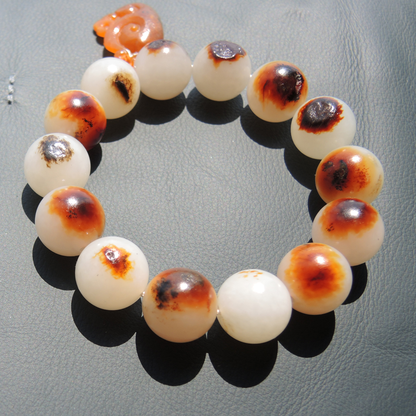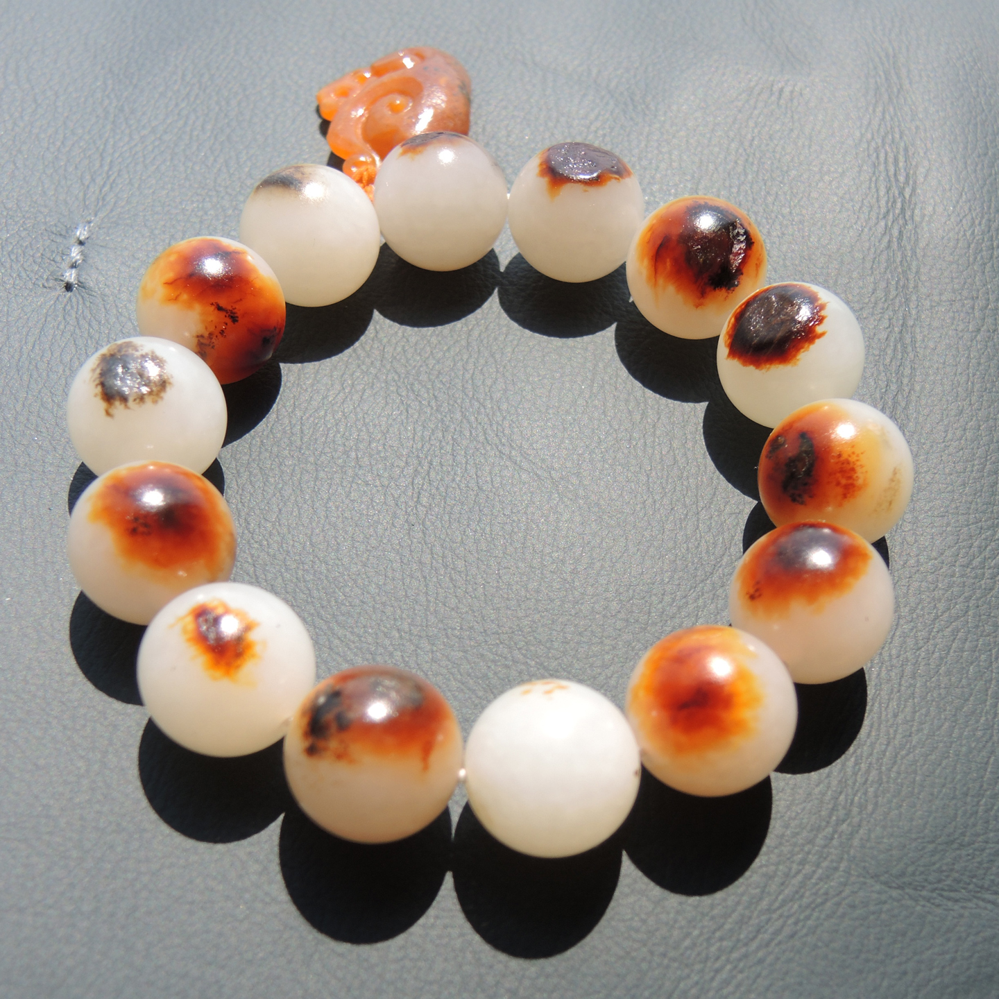 镇店之宝方言珍稀白色名品红黑油沁皮高白羊脂白玉籽料圆珠手链R