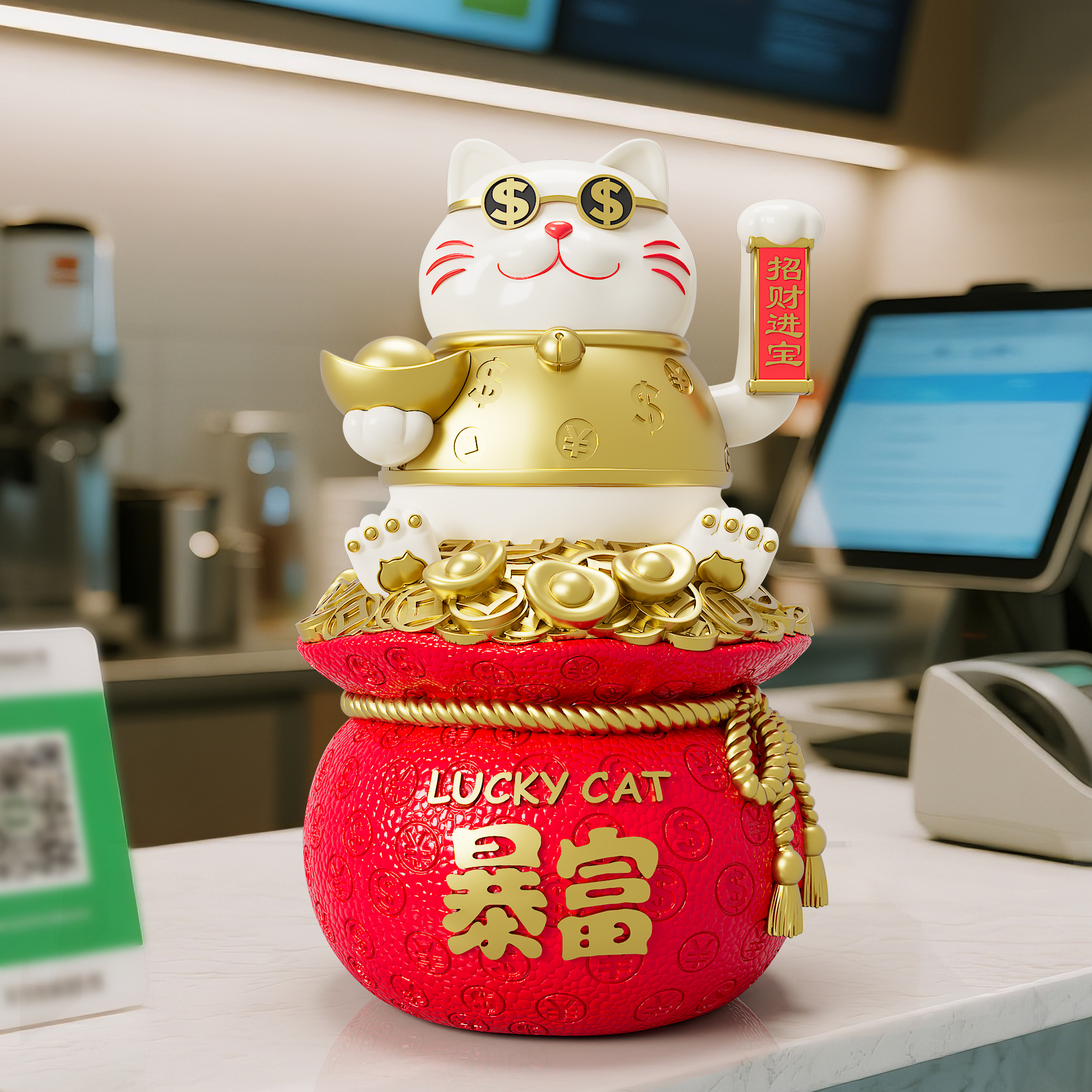 招财猫摆件自动摇手福袋存钱罐办公室前台店铺收银台装饰开业礼品