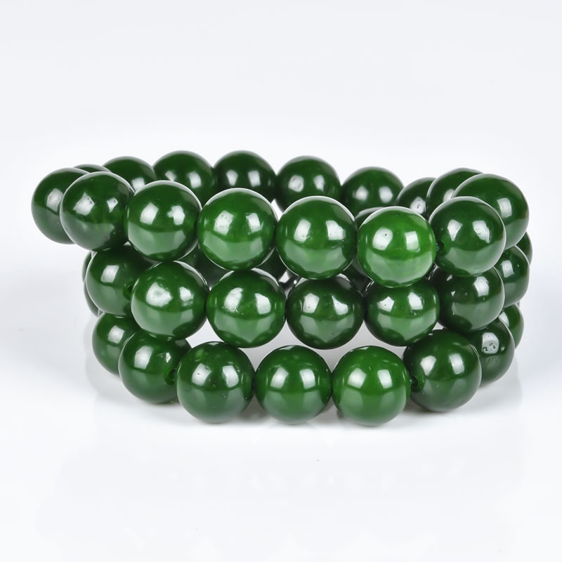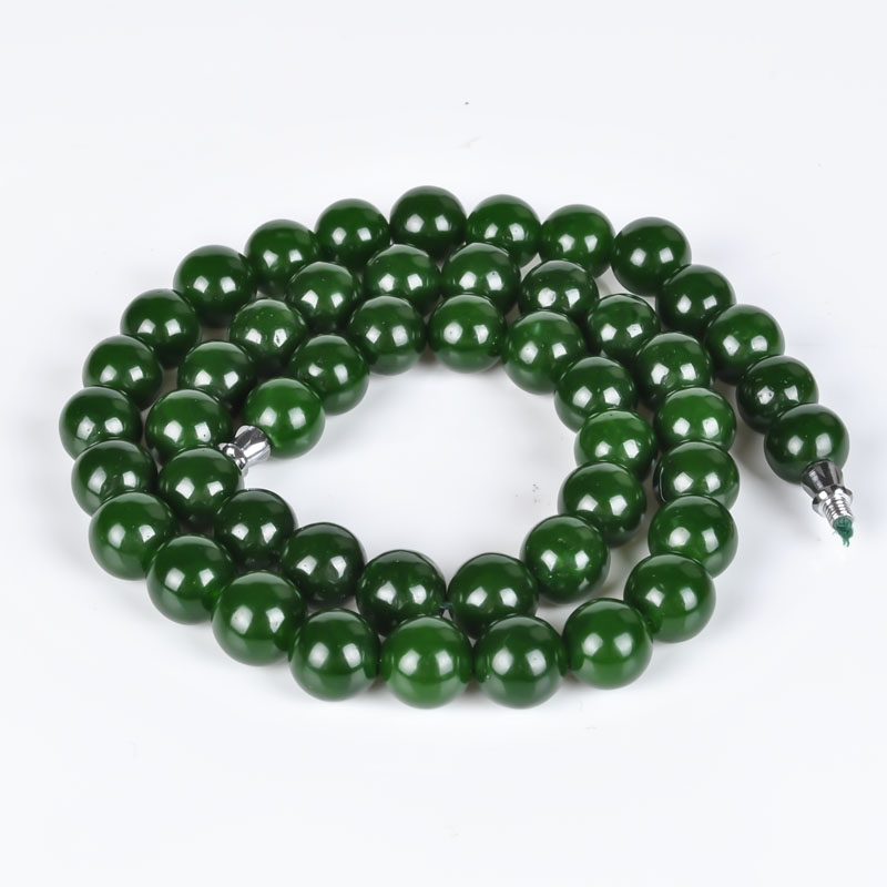 新疆和田玉碧玉项链菠菜绿女款10mm玉石项链精品男女款圆珠链子