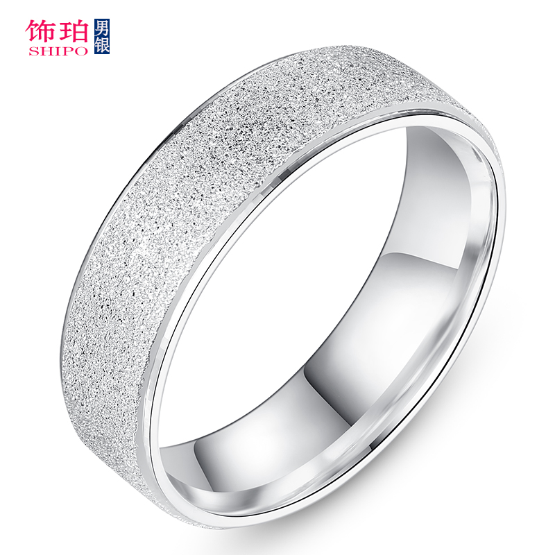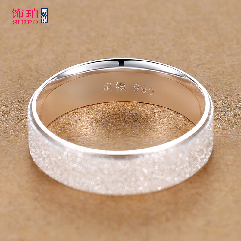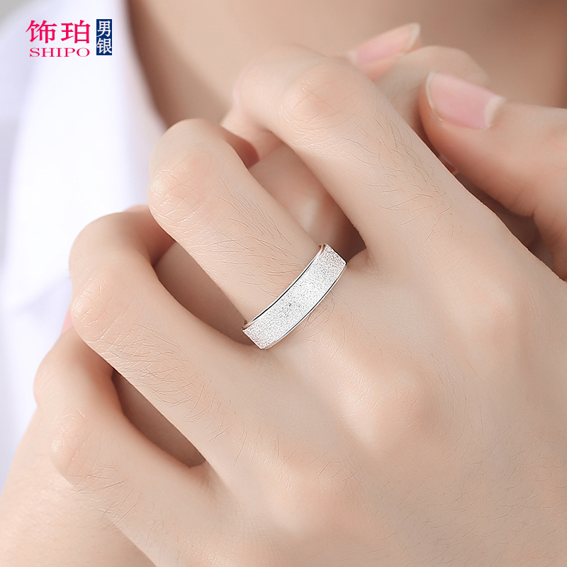 999足银戒指男士纯银潮单身磨砂食指闭口指环女宽版个性时尚百搭
