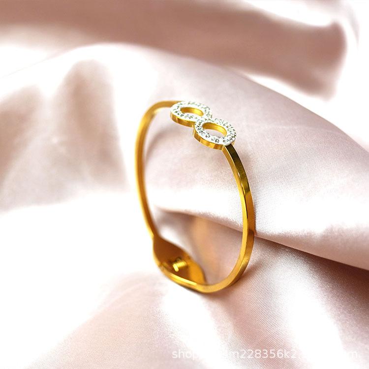 女in韩版手镯新款钛钢k钻镀镶钻饰镶双圈个性手饰手环18大金钛18k
