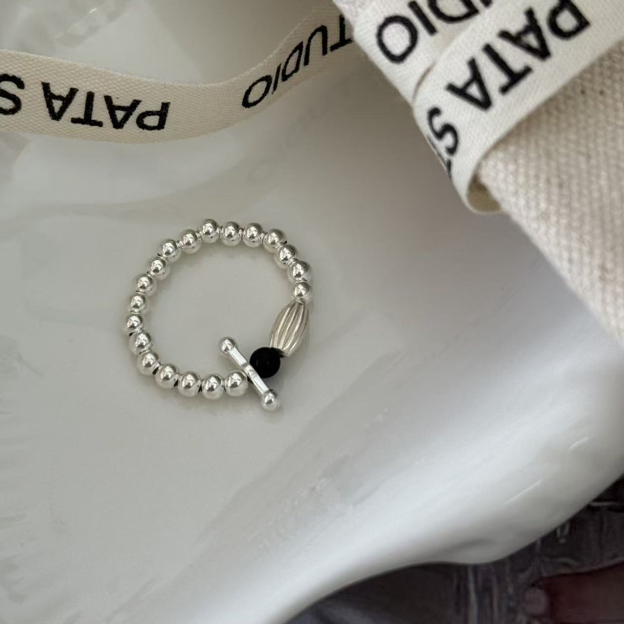 韩版几何圆珠戒指女黑色串珠设计感小众个性创意时尚食指戒手饰潮