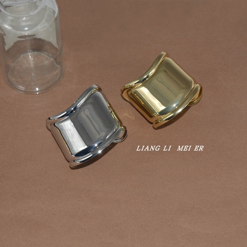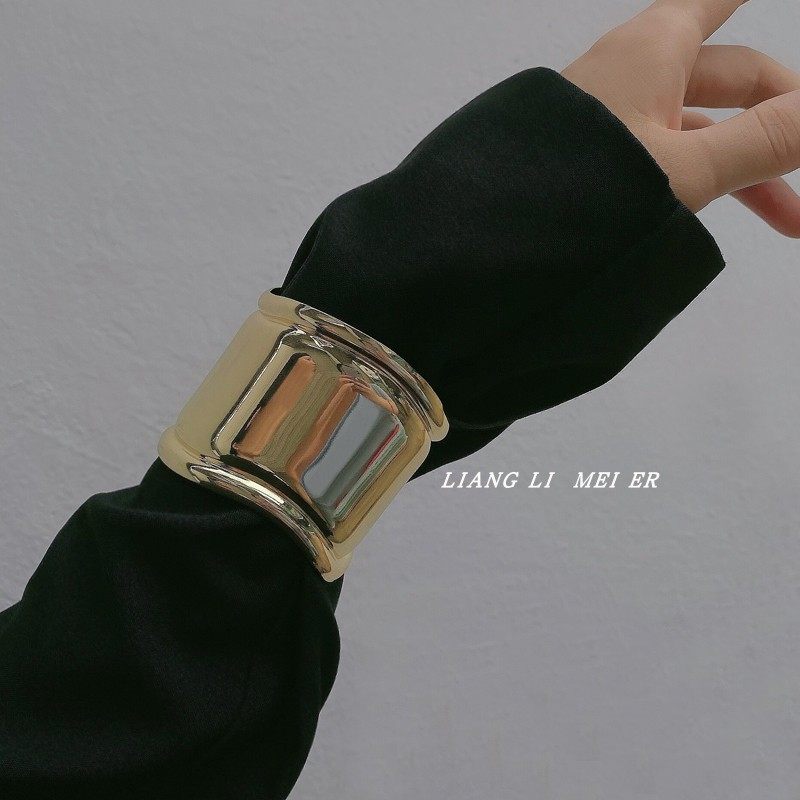 欧美金属设计波浪不对称开口宽版中性手镯ins气质高级感亮面手环
