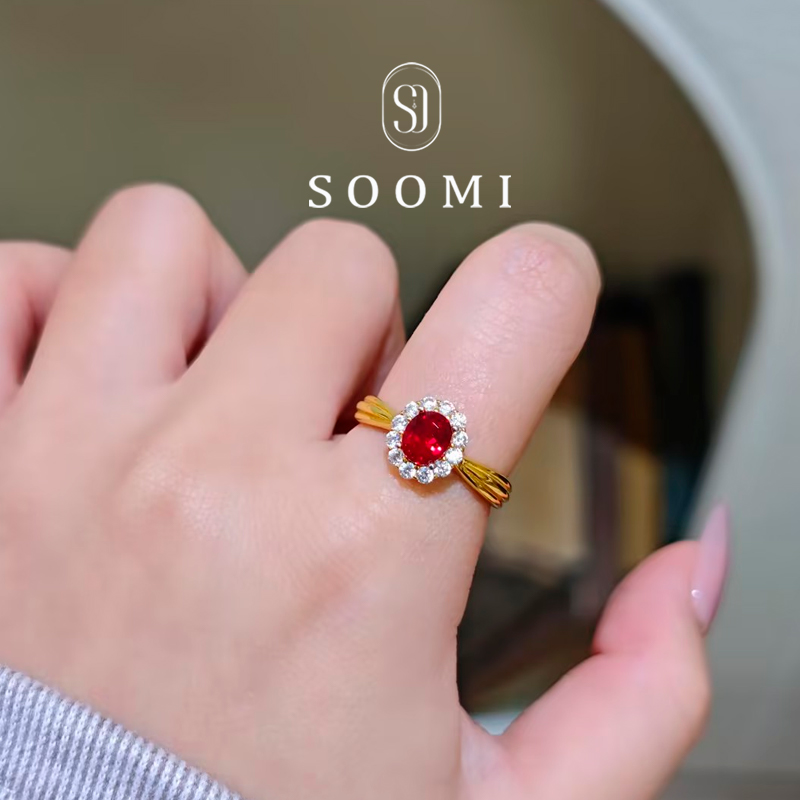 【SOOMI 简雅】925银1克拉培育鸽血红宝石戒指复古设计戒环女