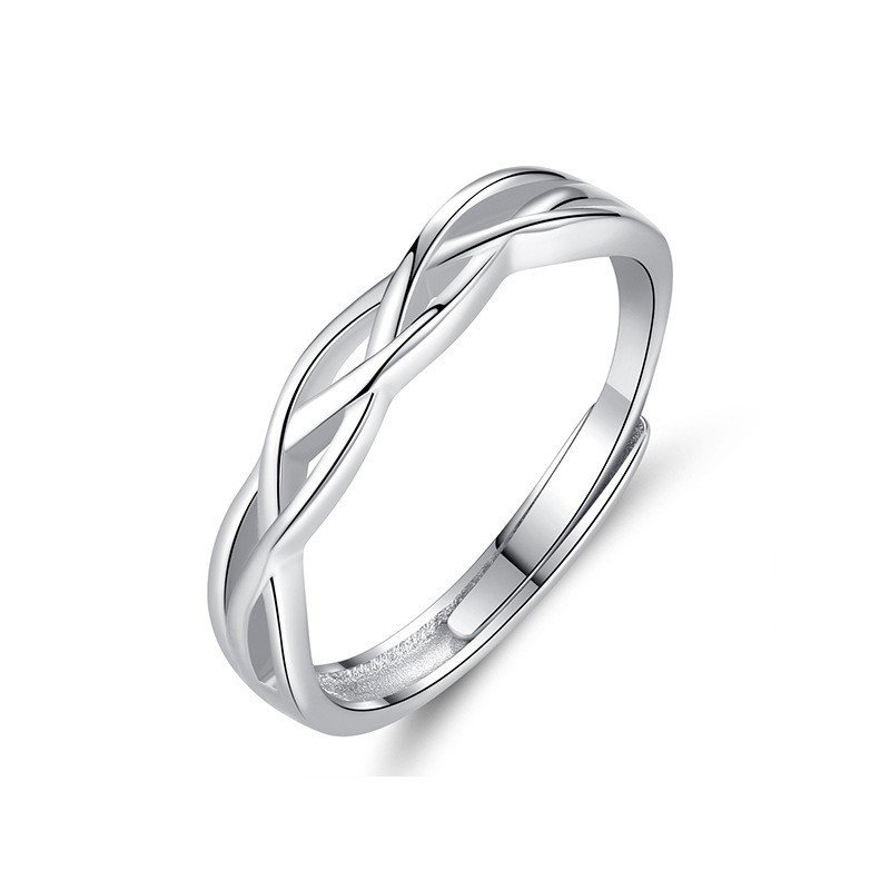 爱的涟漪情侣戒指男女一对粉钻爱心食指戒时尚简约交织开口对戒