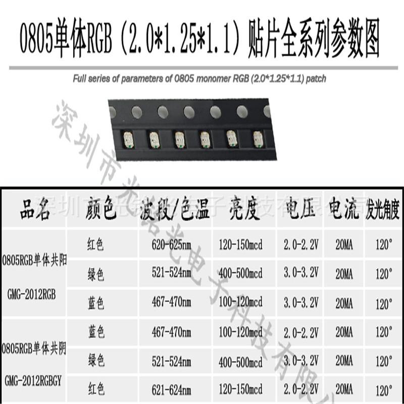 支持订做共阴0805RGB全彩单体2012红蓝绿七彩发光二极管小体积