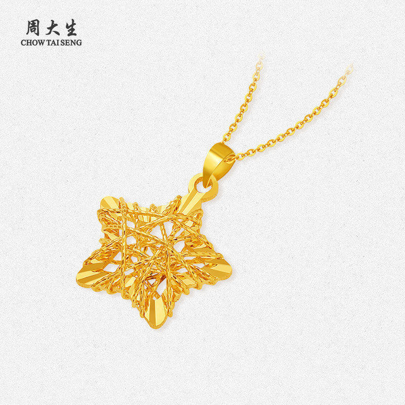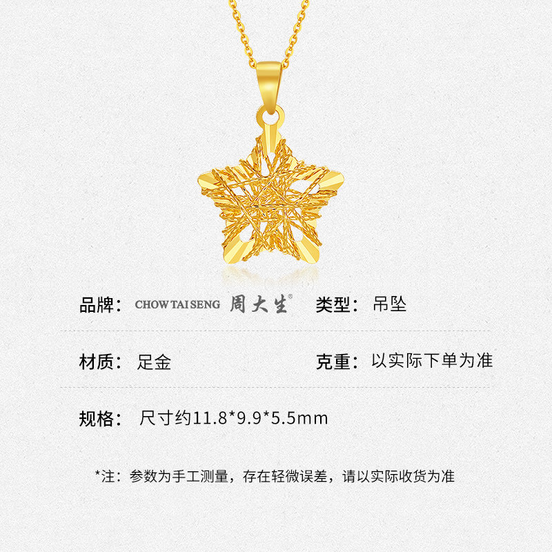 周大生许愿星星黄金吊坠爆闪镂空金项链女友老婆妈妈节日生日礼物