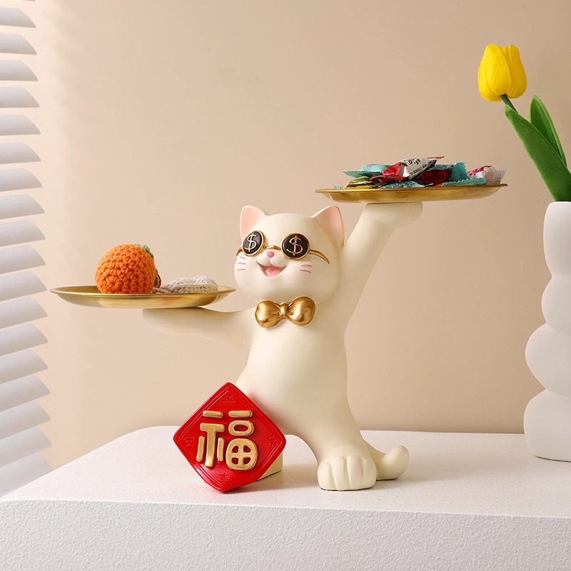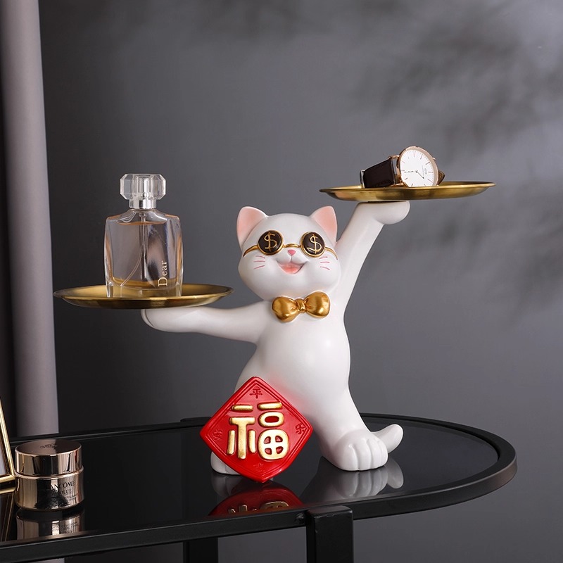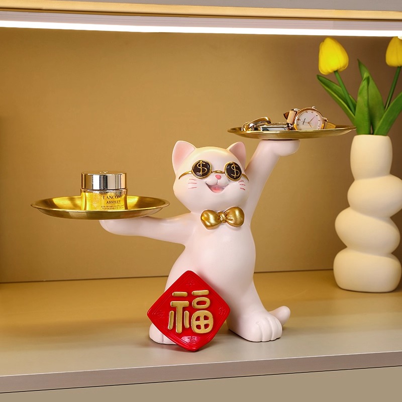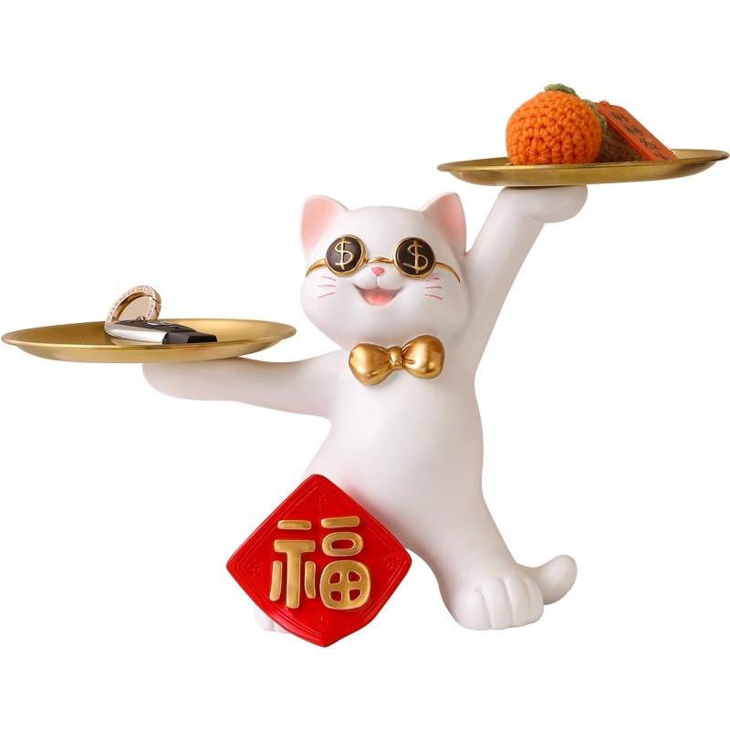 招财猫入户玄关钥匙收纳摆件电视柜托盘客厅桌面装饰乔迁新居礼物