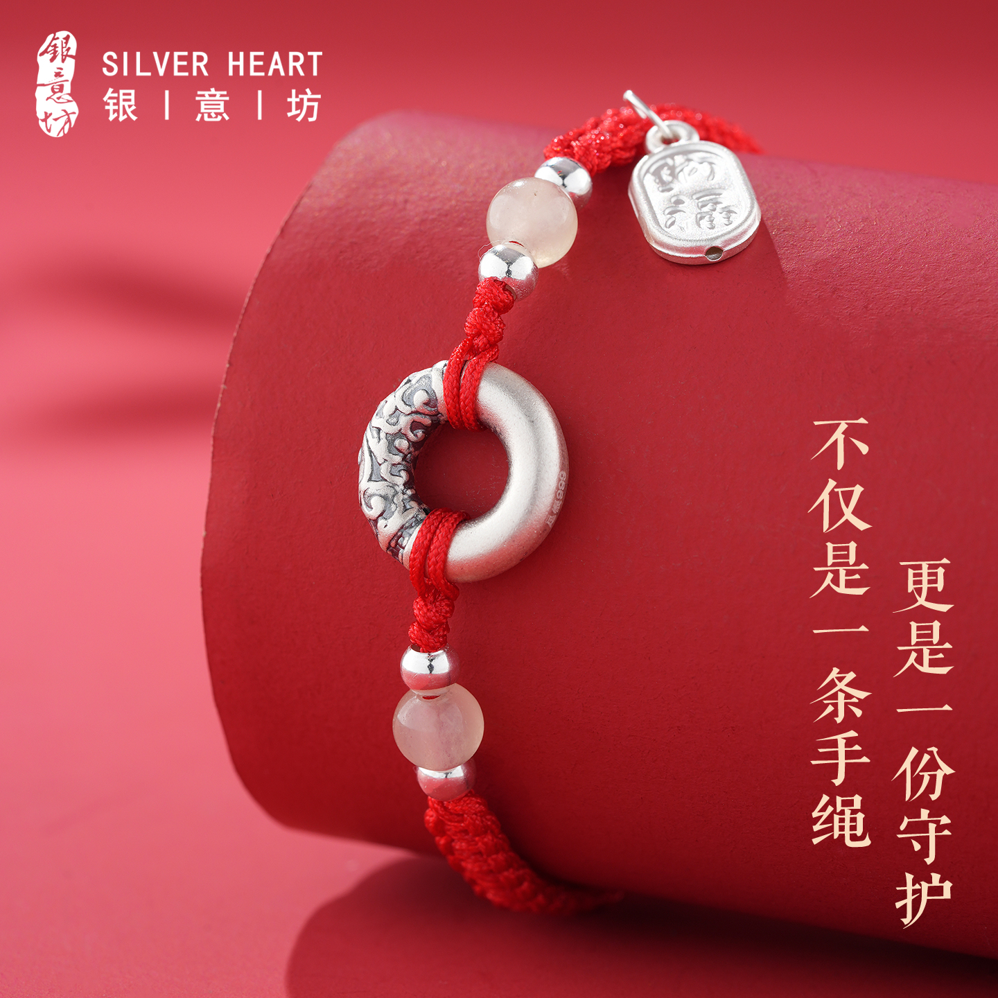 红绳手链儿童女孩男童女童足银平安扣初中生小学生红手绳生日礼物