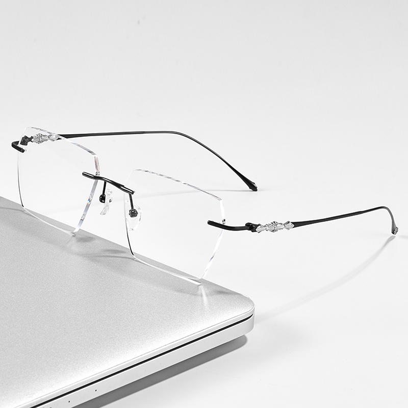 配无框纯钛可近视度数眼镜框男女款大脸框修脸显瘦潮时尚成品眼镜