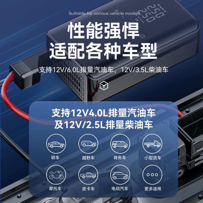 汽车应急启动电源车载充气泵一体机紧急冬季强起电瓶搭电打火神器