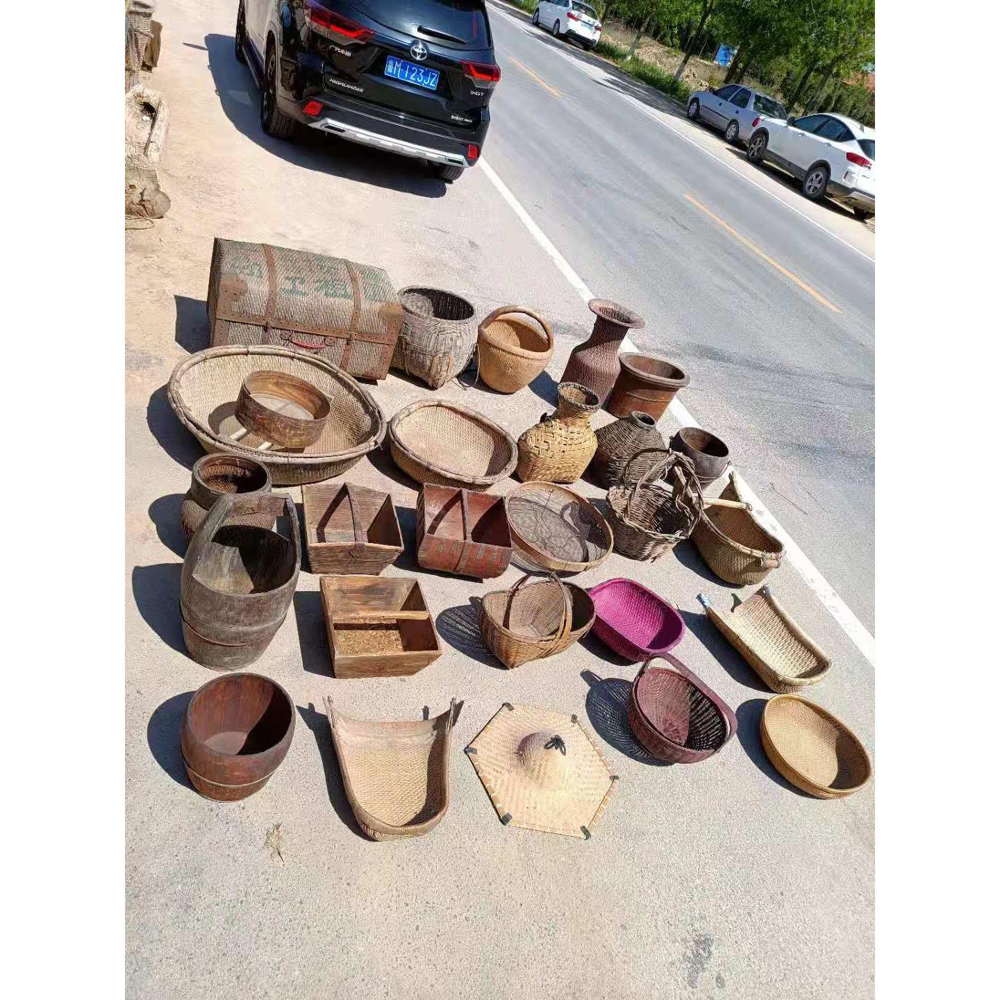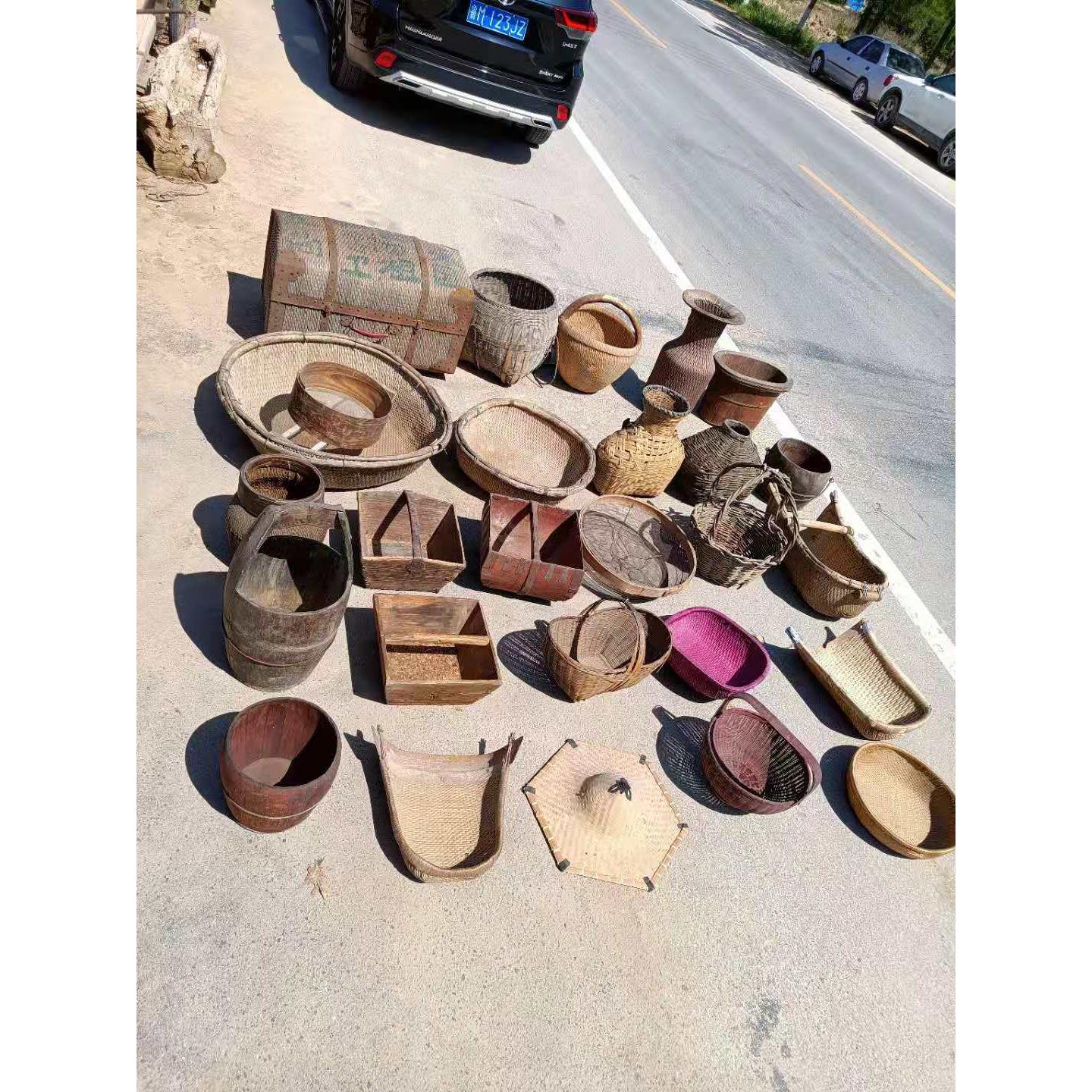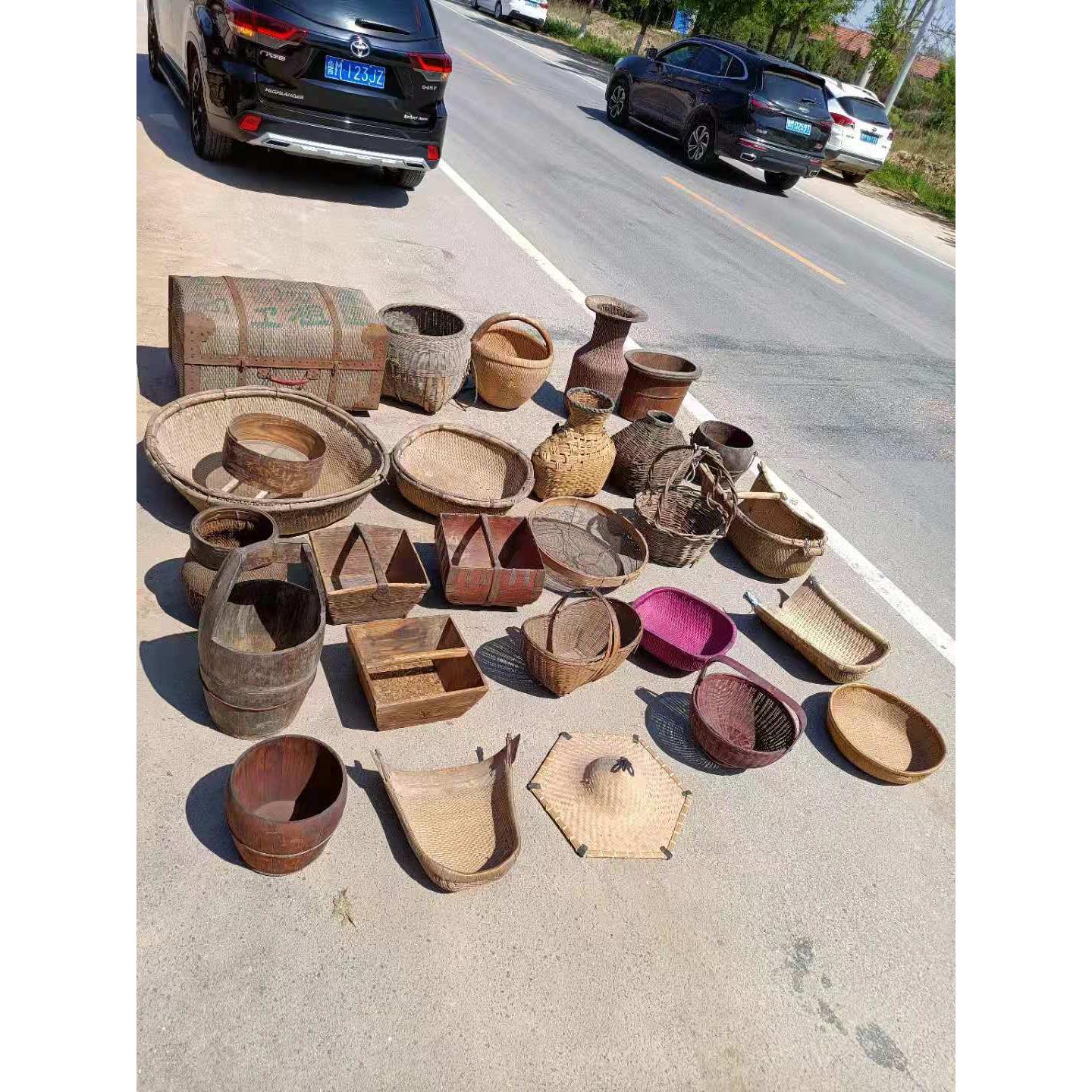 民俗老物件竹编篮子木筐提筐木桶斗笠簸箕怀旧复古传统工艺品摆件