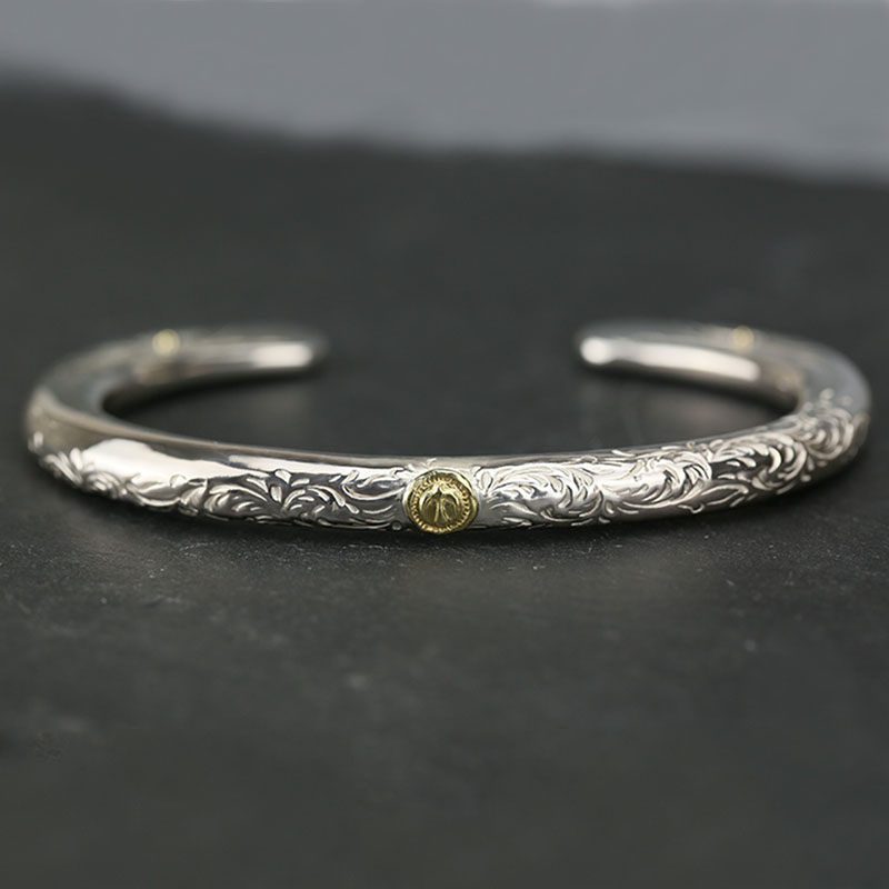 牛钝精工 kenkikuchi菊地健双鹰头开口点金唐草四目鹰手镯18K复古