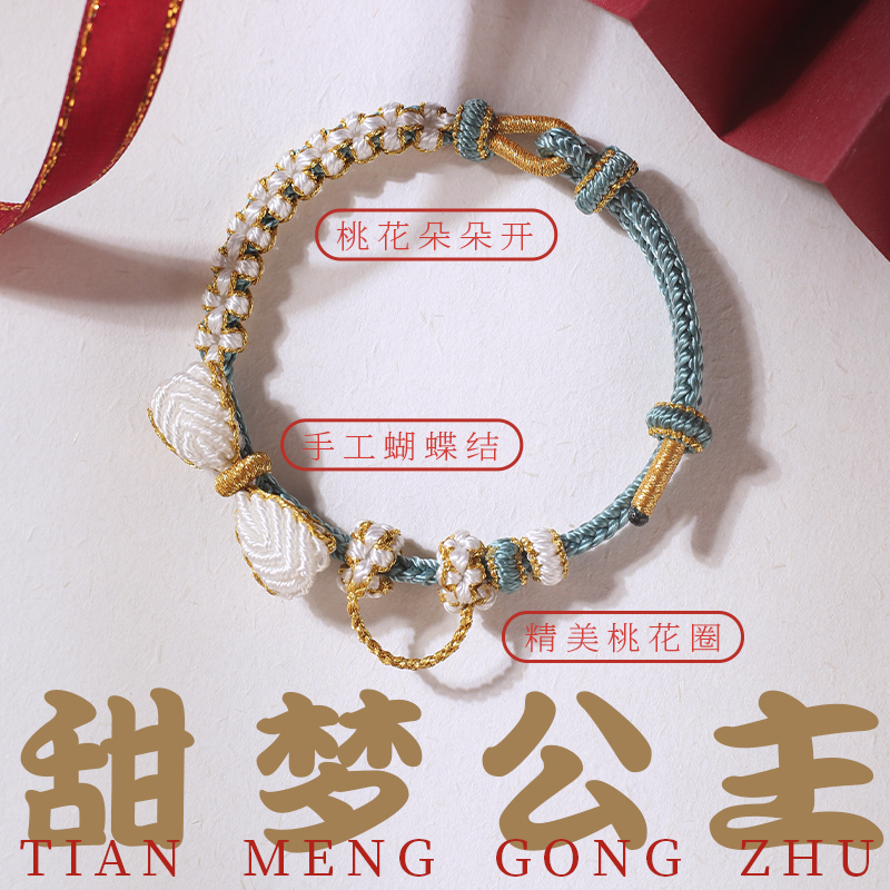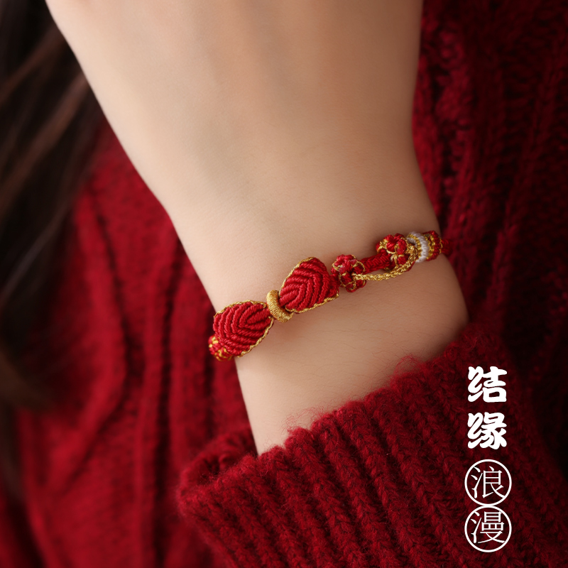 手工编织红金蝴蝶结手绳可调节穿珠DIY黄金转运珠成品轻奢手链女