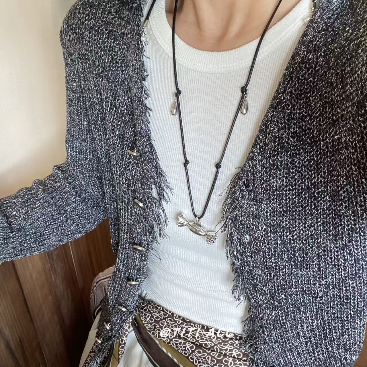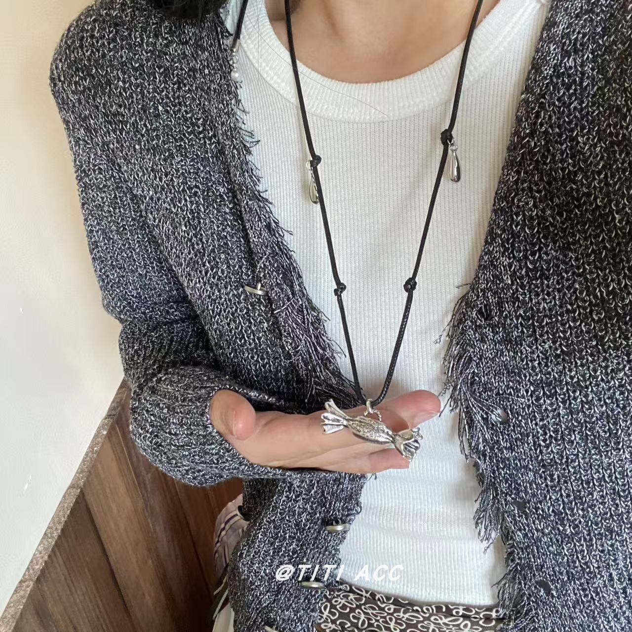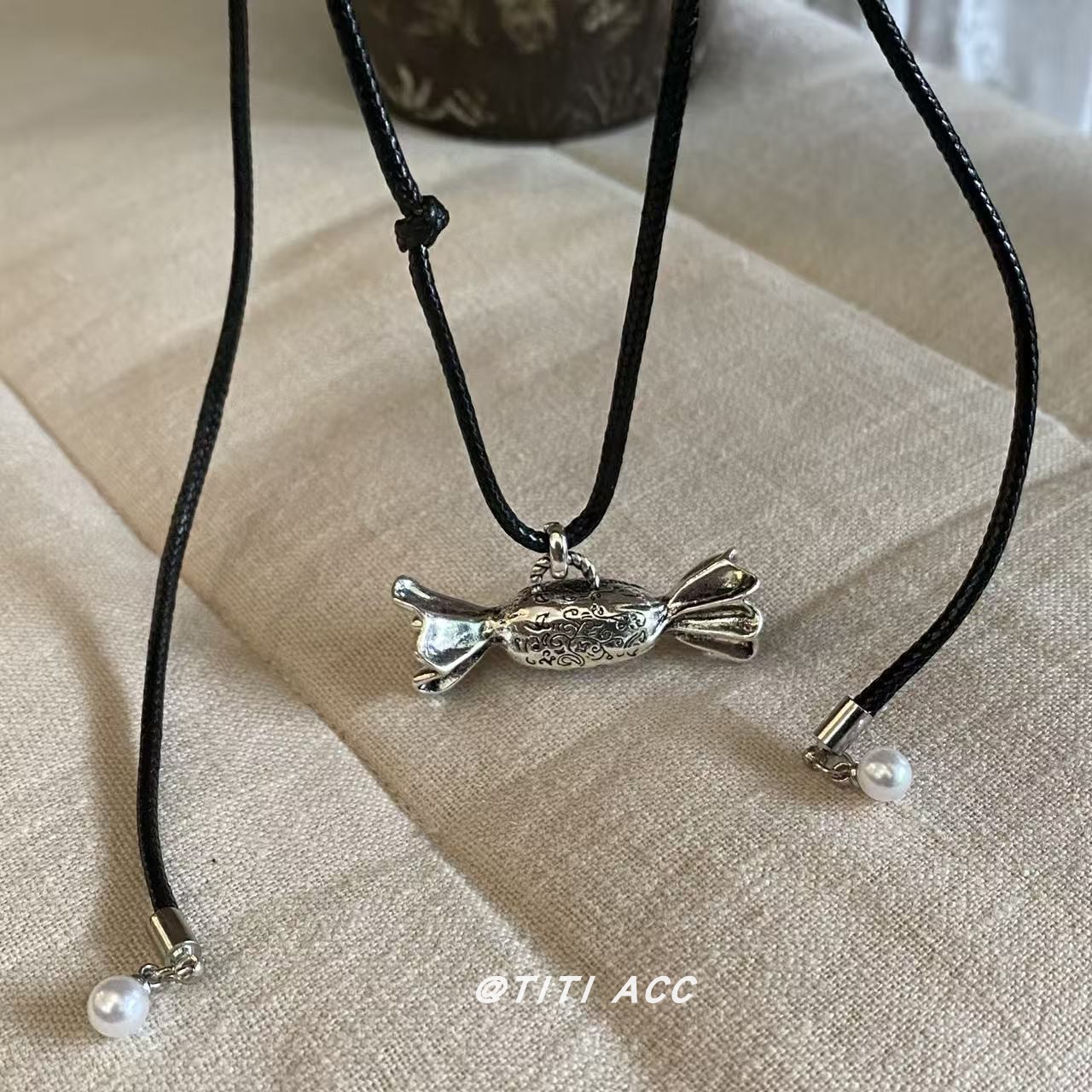 复古雕花糖果吊坠项链女高级感小众设计毛衣链时尚简约个性配饰潮