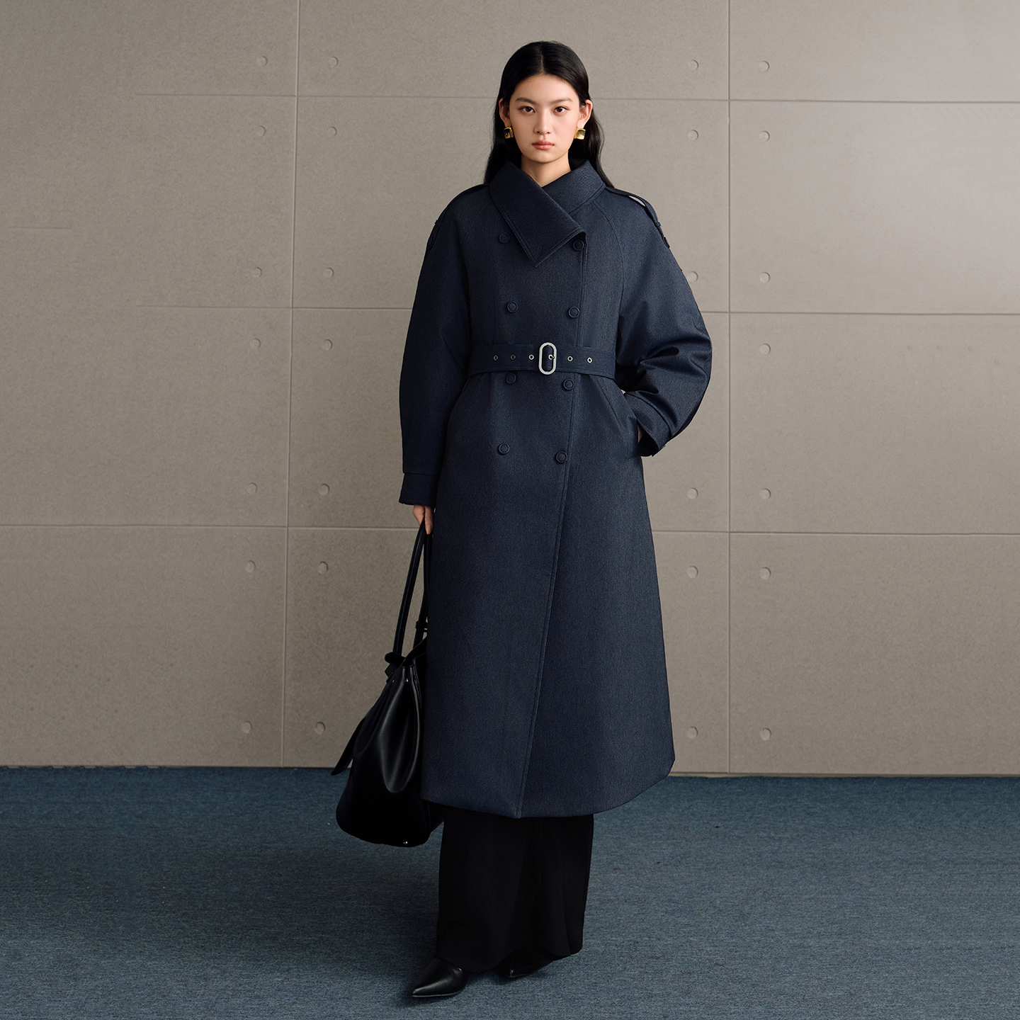 【宋佳同款】艾莱依2025新款风衣鹅绒服女时尚可脱卸围巾长款外套
