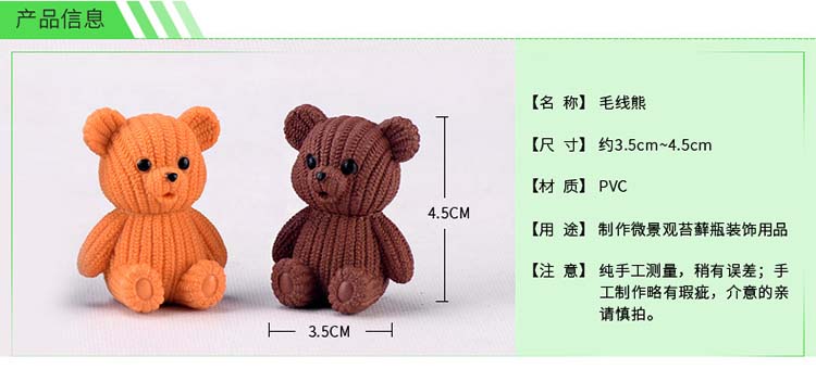微景观小饰品创意PVC毛线熊可爱卡通小动物摆件摄影摆设小熊玩具