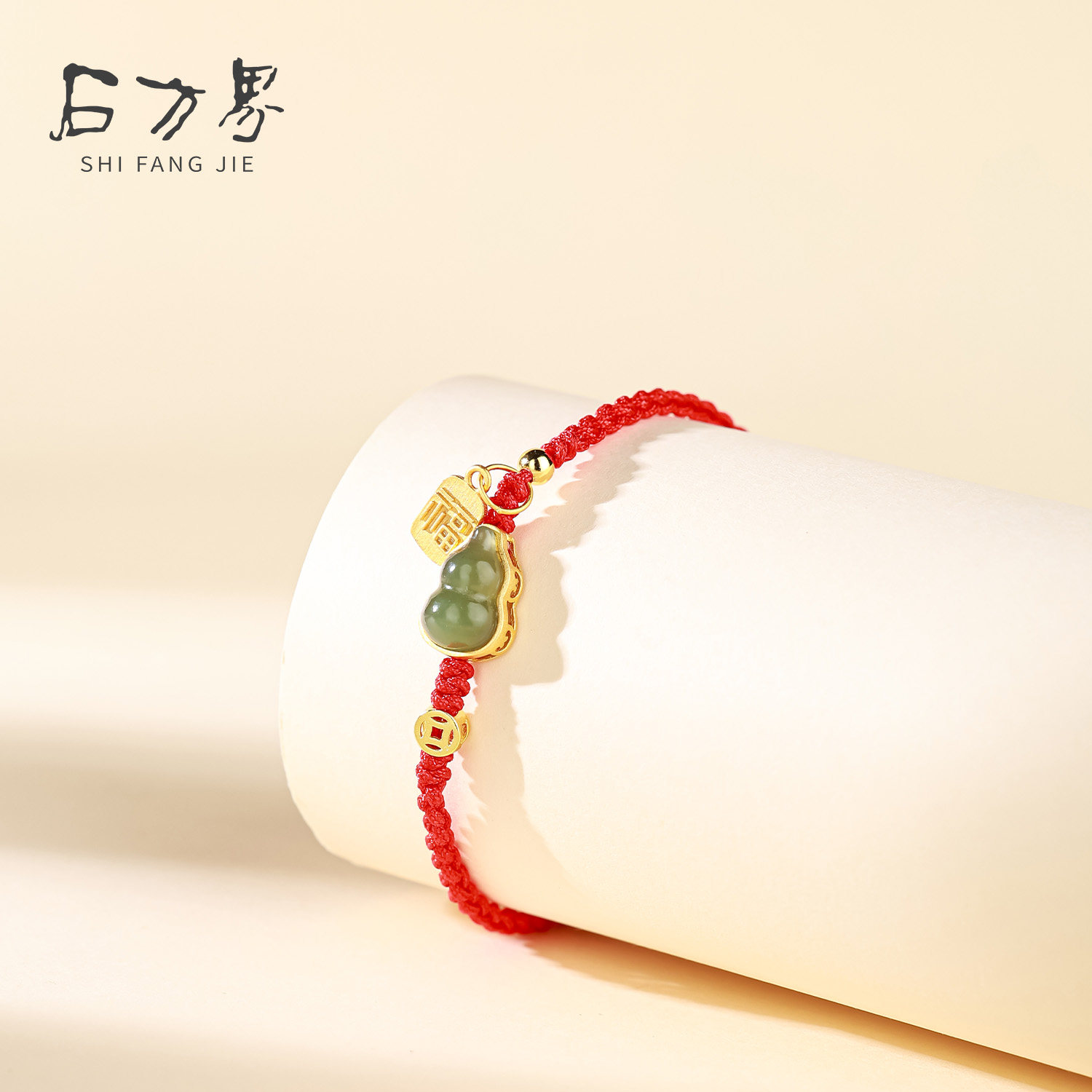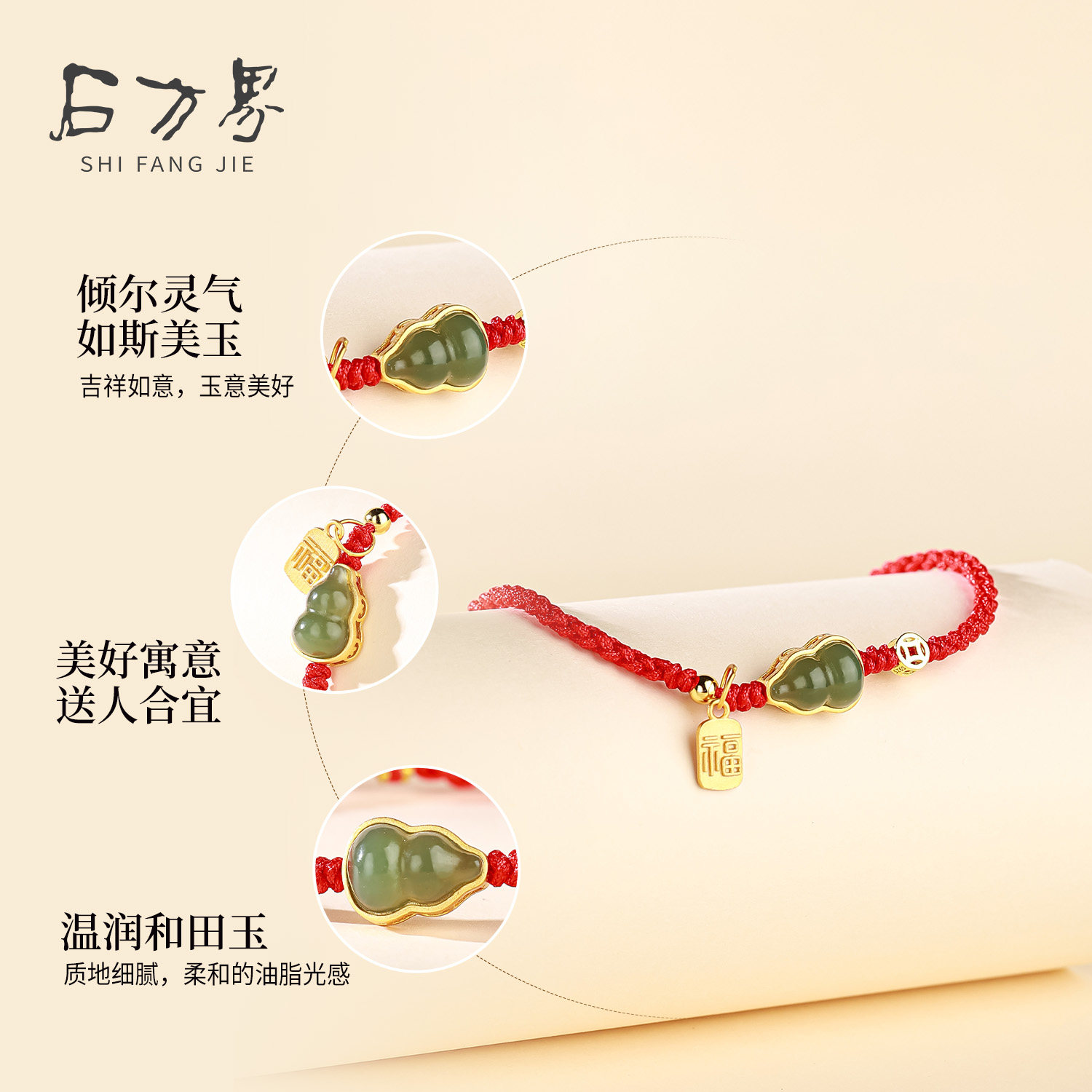 和田玉福禄手莲女天然玉石红色编绳秋冬小众高级感生日礼物送女生